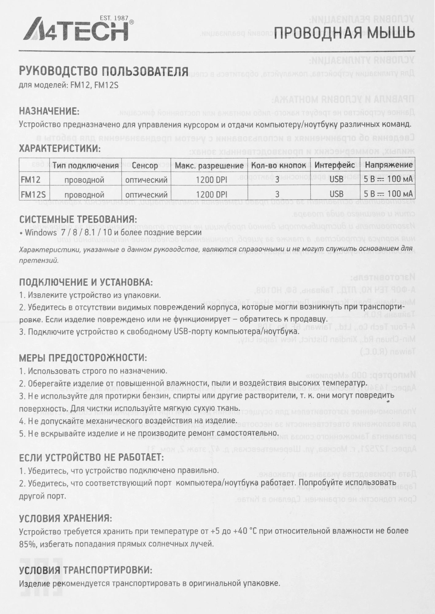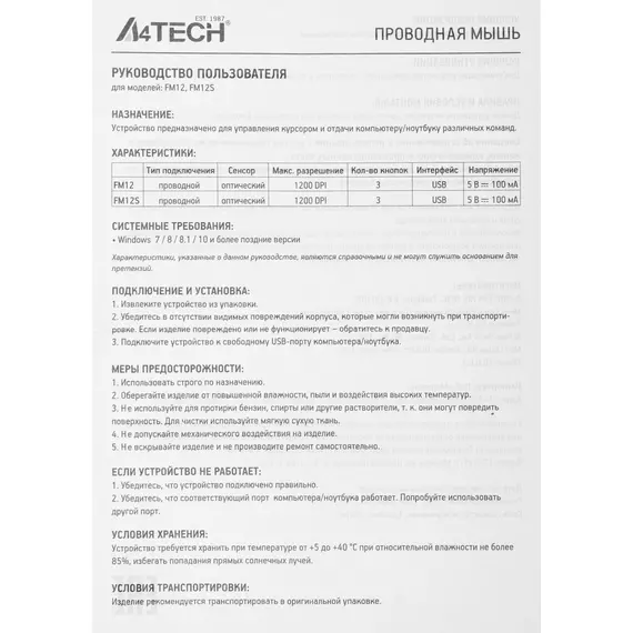 Наличие товара A4-Tech Fstyler FM12S BLACK