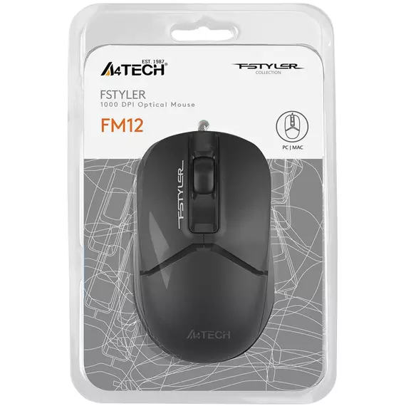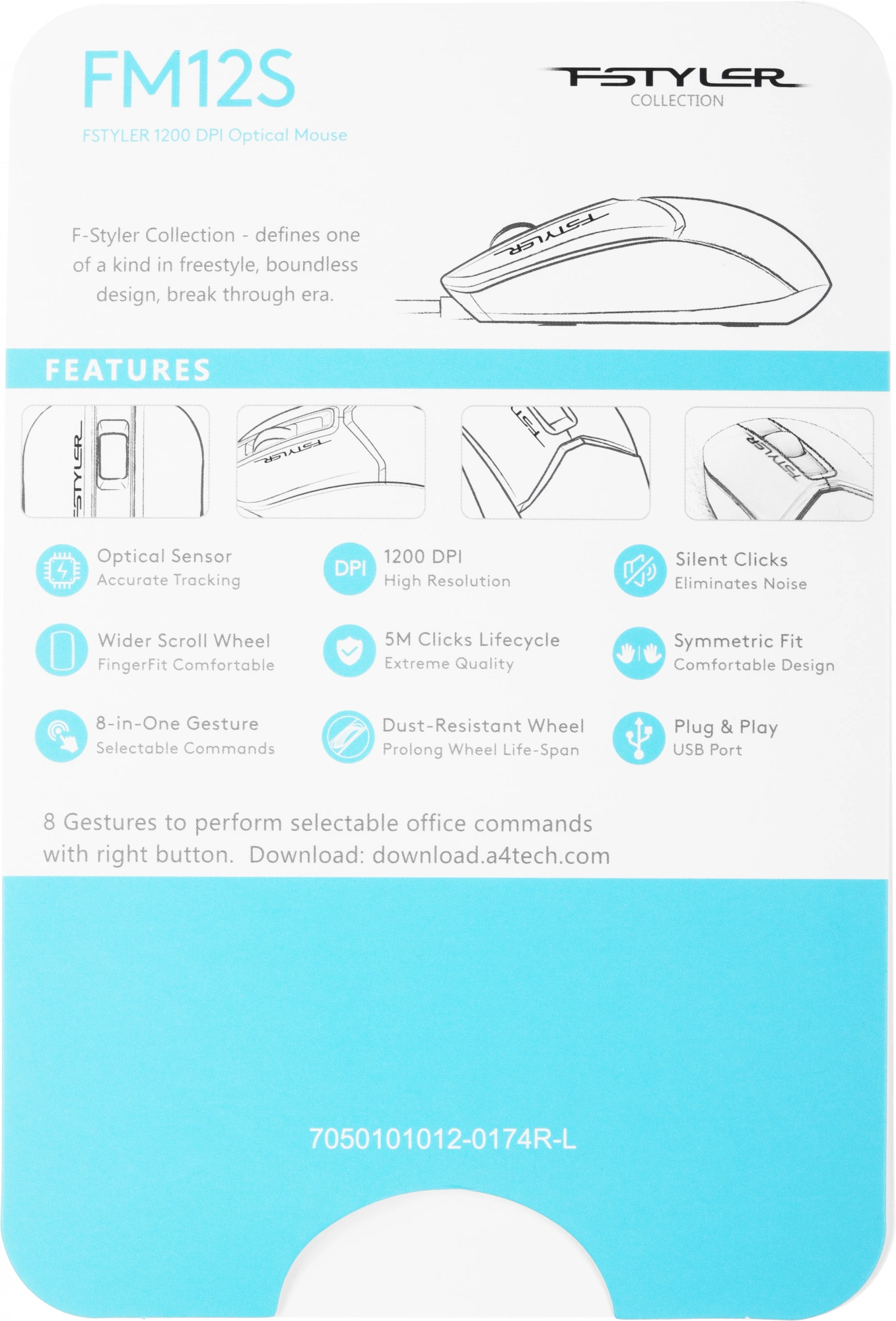 Мышь A4-Tech Fstyler FM12S BLACK черный оптическая 1200dpi silent USB 3but