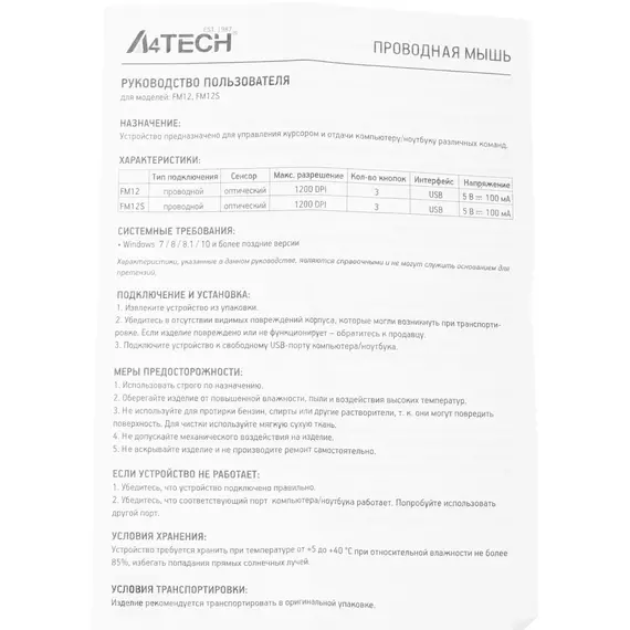 Наличие товара A4-Tech Fstyler FM12S PANDA