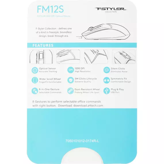 Мышь A4-Tech Fstyler FM12S PANDA белый/черный оптическая 1200dpi silent USB 3but
