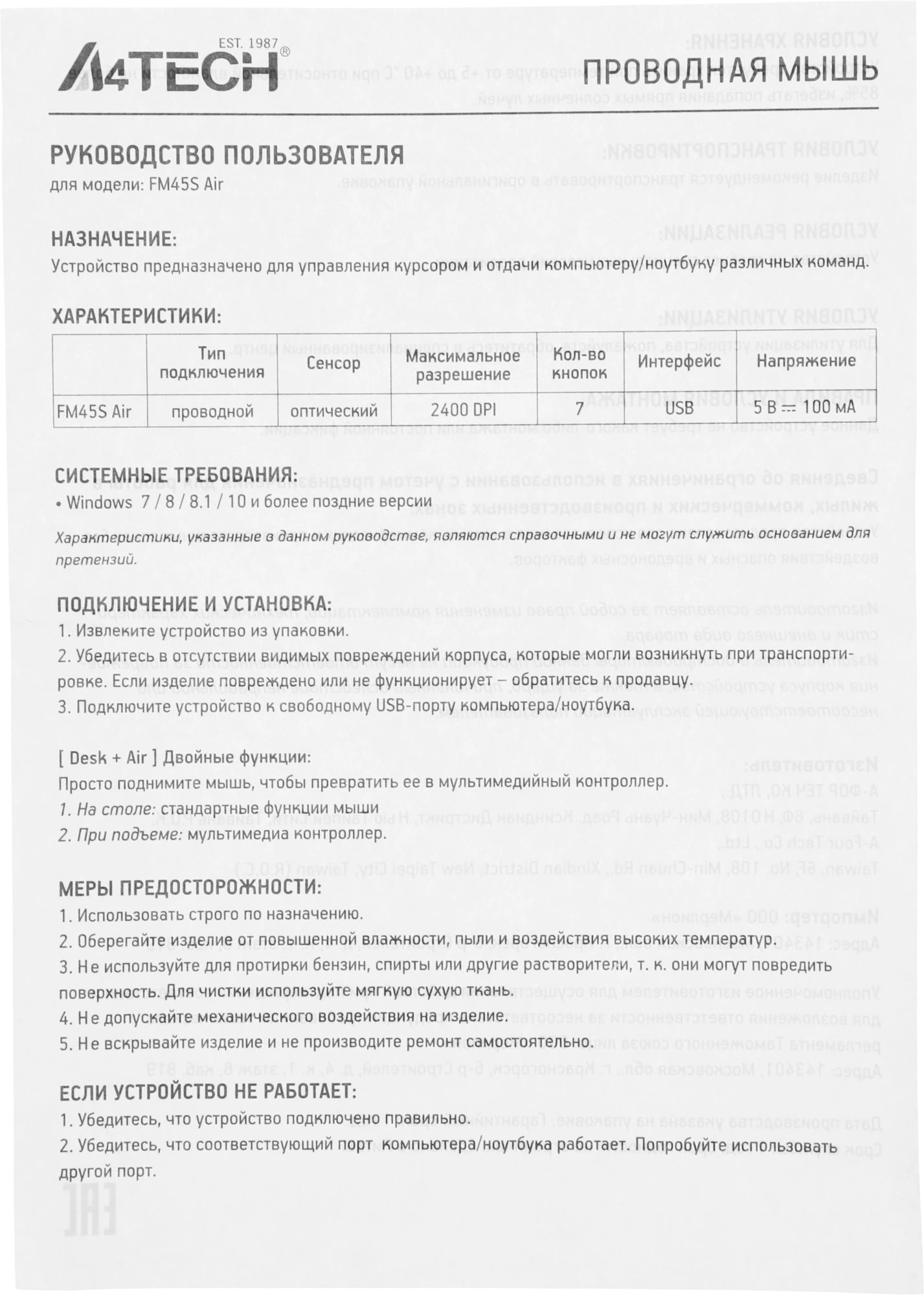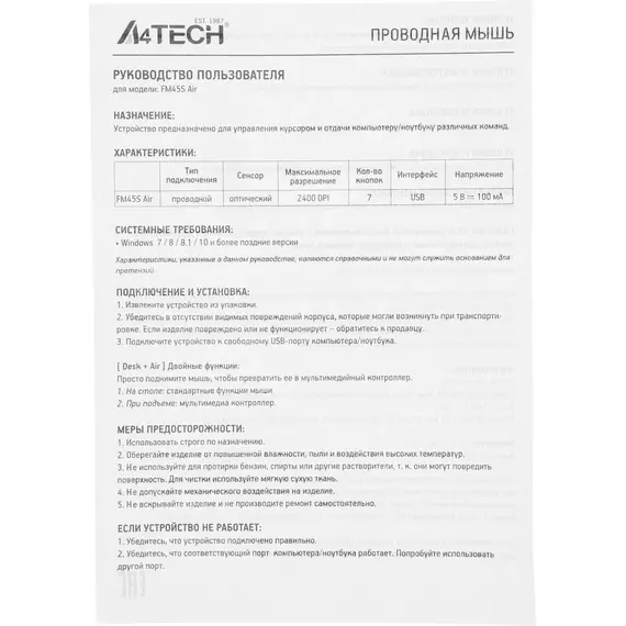 Описание A4-Tech Fstyler FM45S Air CREAM BEIGE