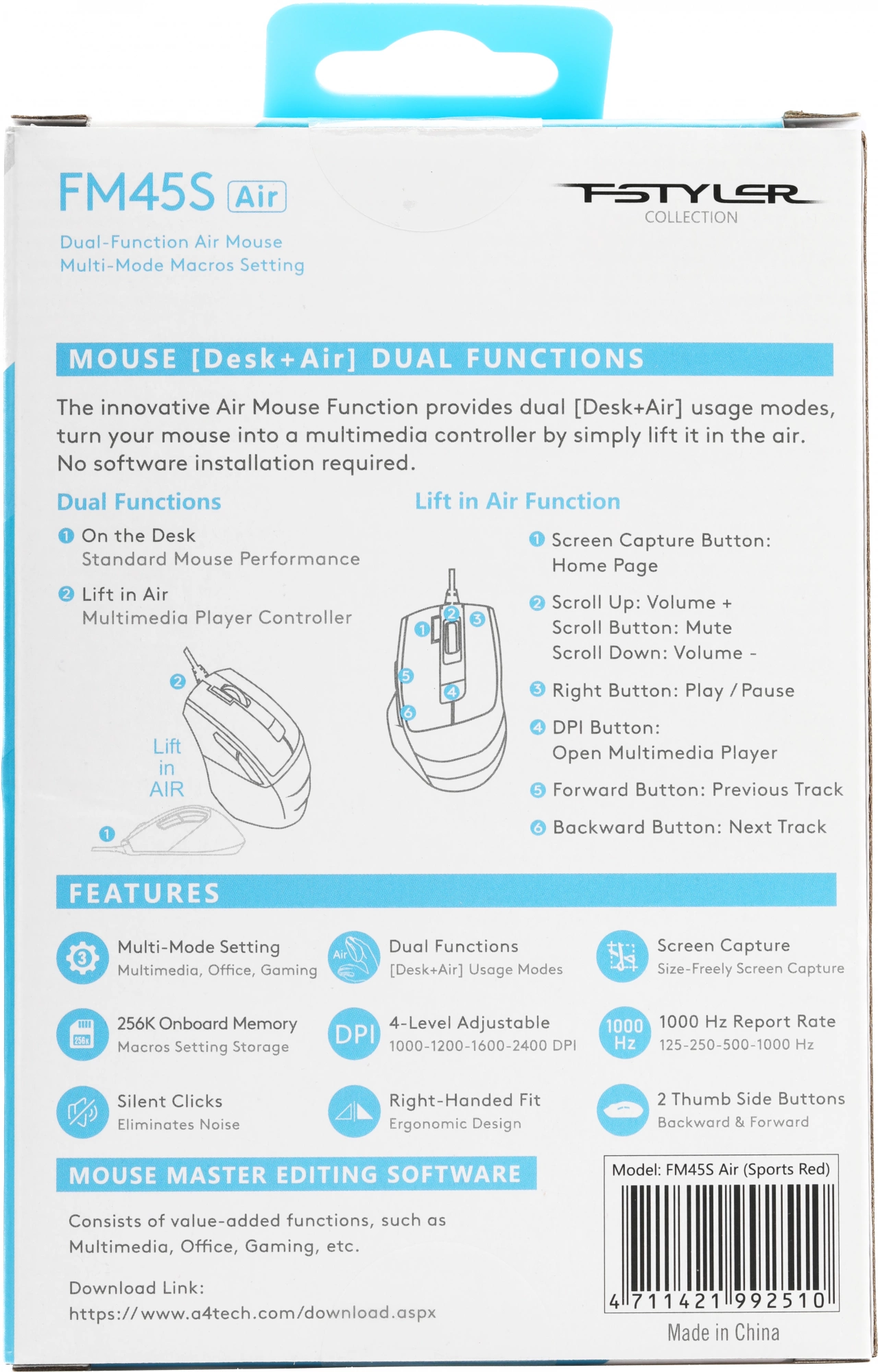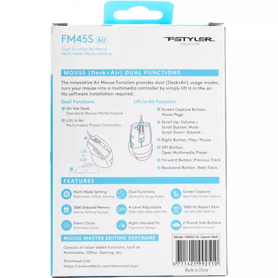 Описание A4-Tech Fstyler FM45S Air [FM45S AIR USB (SPORTS RED)]