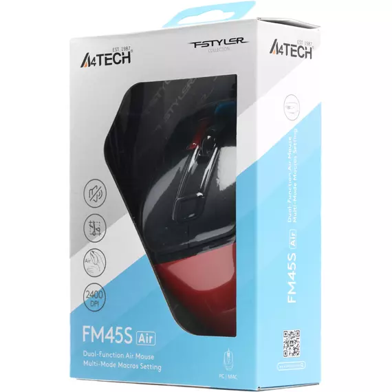 Мышь A4-Tech Fstyler FM45S Air красный/черный оптическая 2400dpi silent USB 7but [FM45S AIR USB (SPORTS RED)]