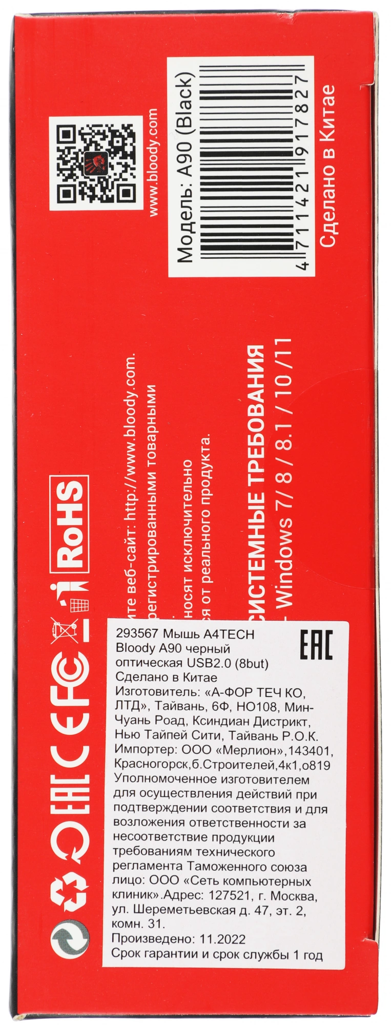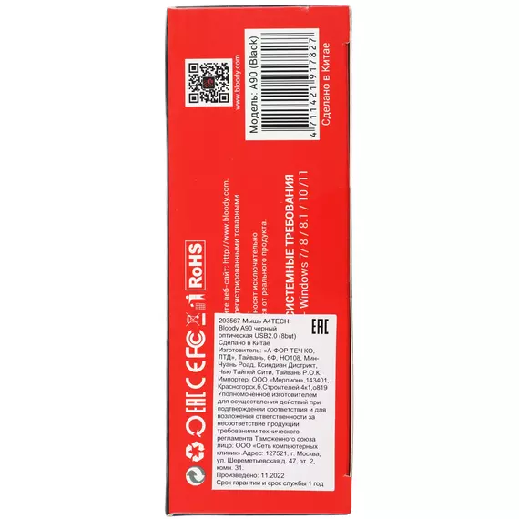 Наличие товара A4-Tech Мышь A4Tech Bloody A90 черный оптическая 6200dpi USB 8but [A90]