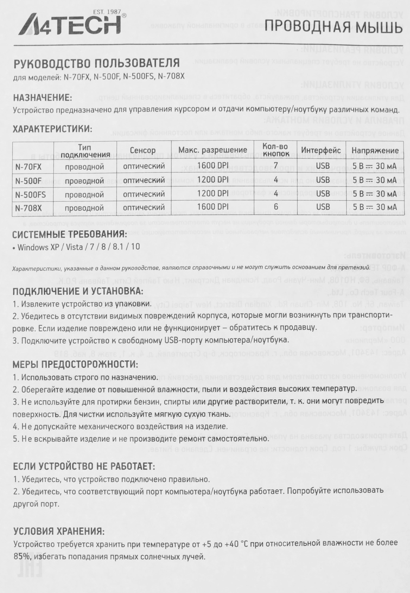 Наличие товара A4-Tech V-Track Padless N-500FS