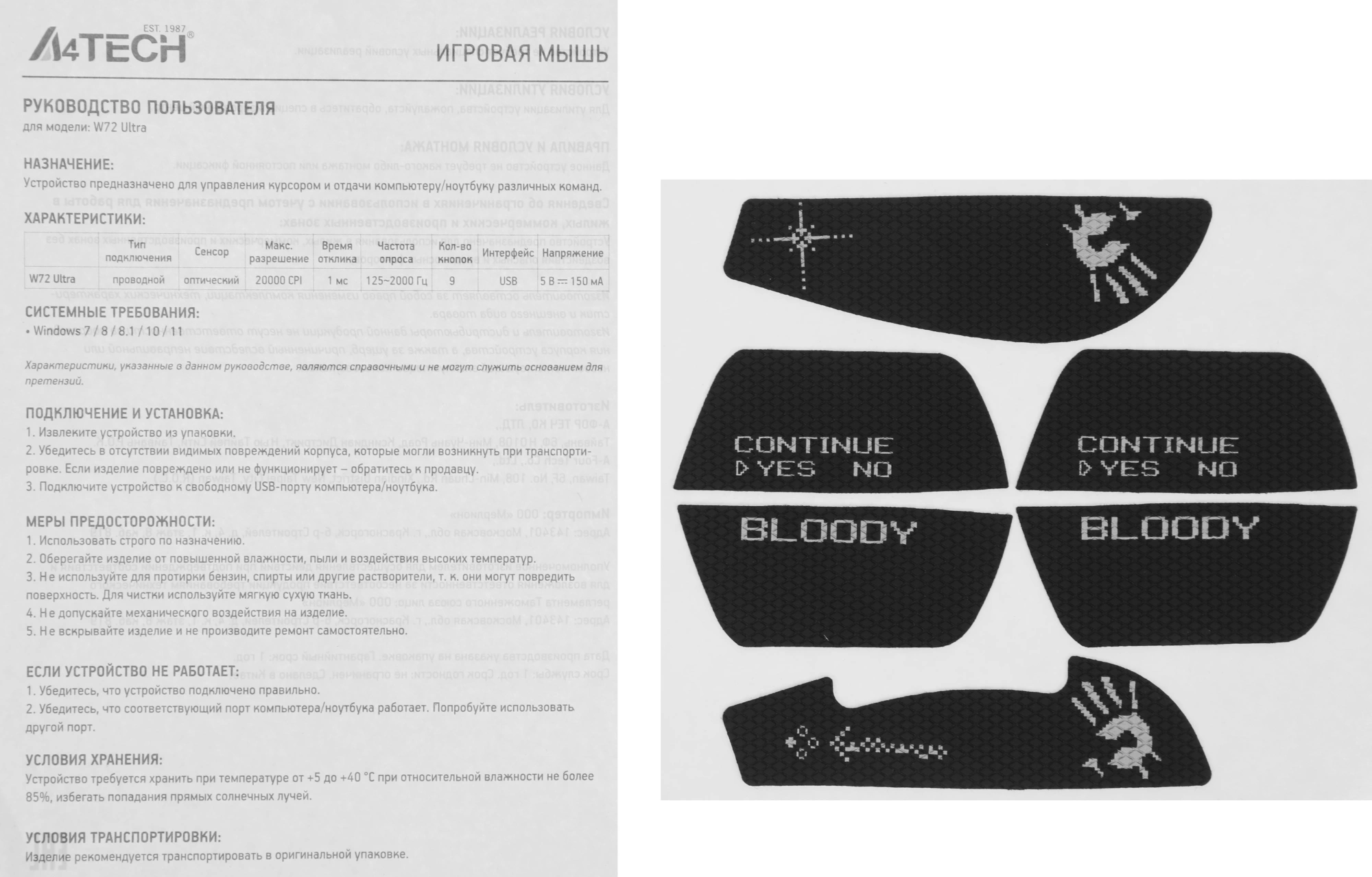 Описание A4-Tech W72 Ultra Pixels Blue