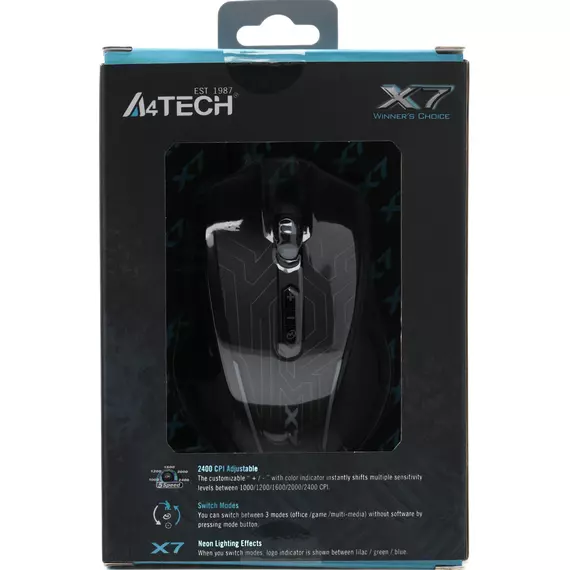 Мышь A4-Tech X87 черный оптическая 2400dpi USB 8but