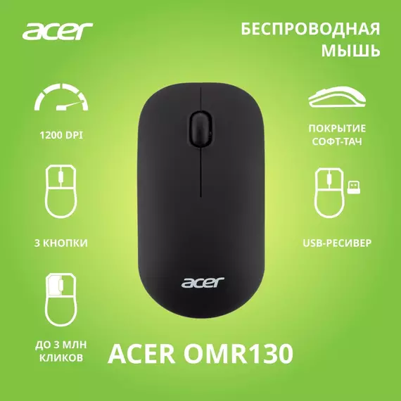 Мышь Acer OMR130 черный оптическая 1200dpi беспров. USB 3but [ZL.MCEEE.00F]