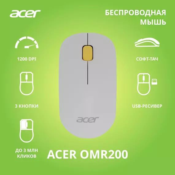 Мышь Acer OMR200 желтый оптическая 1200dpi беспров. USB для ноутбука 2but [ZL.MCEEE.020]
