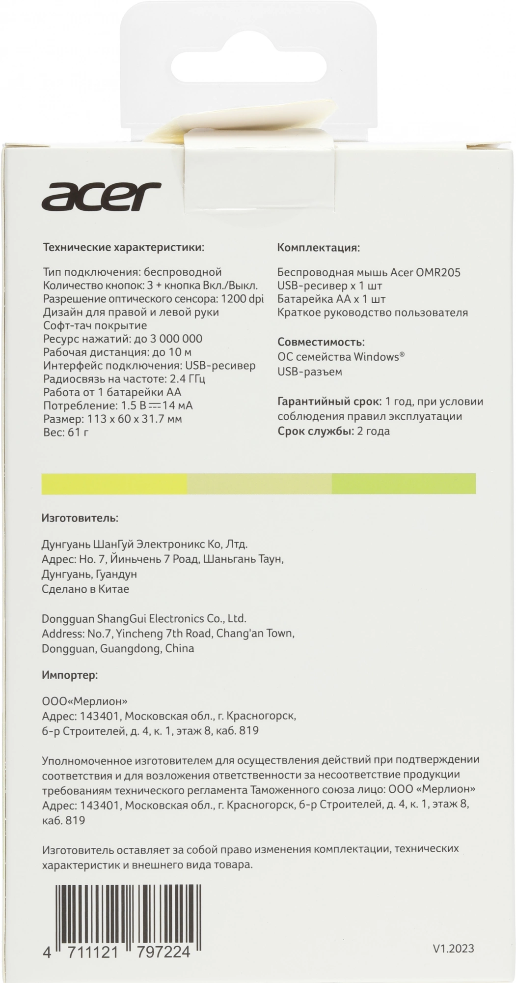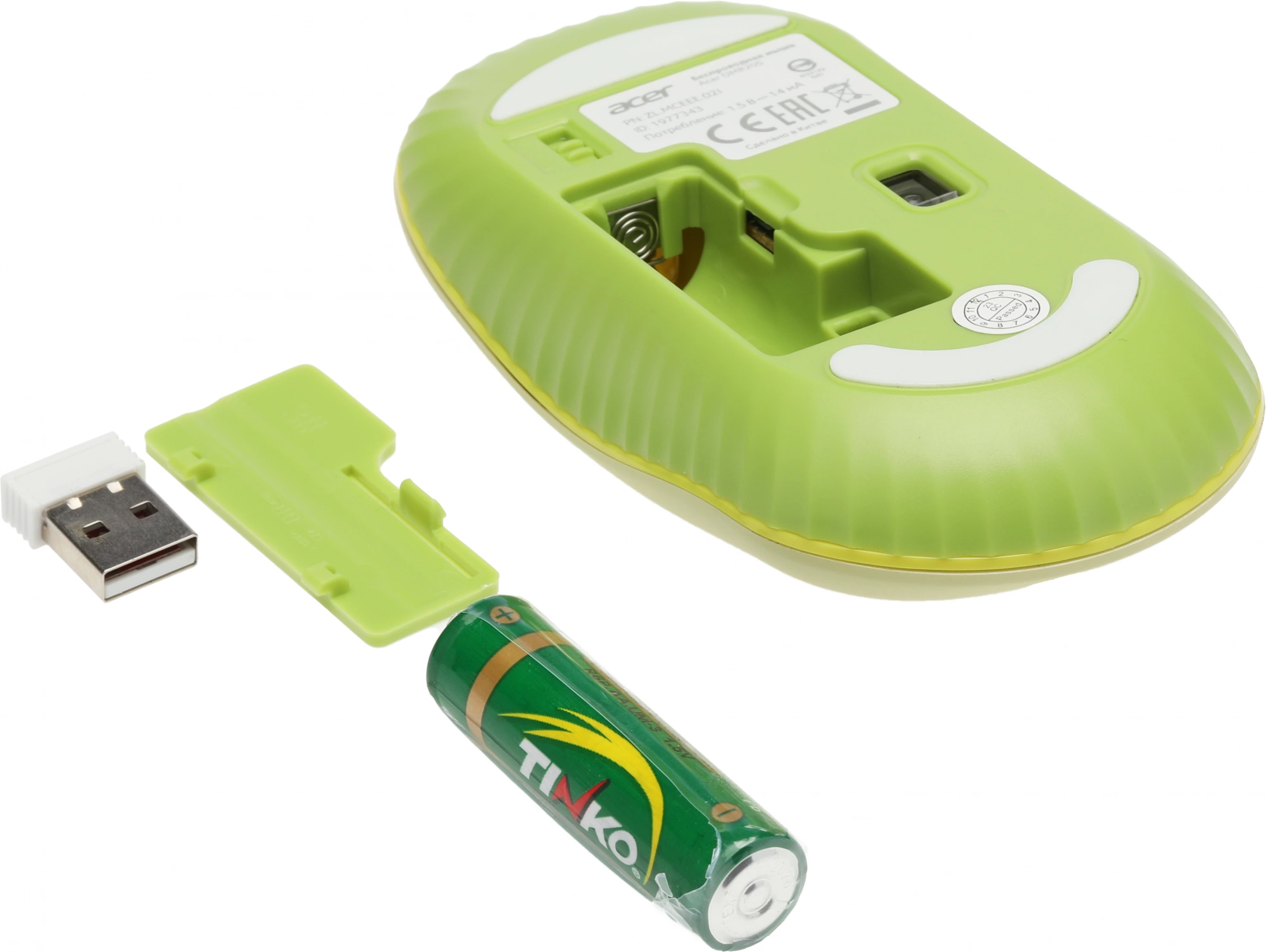 Мышь Acer OMR205 оптическая 1200dpi беспров. USB для ноутбука 3but зеленый/желтый [ZL.MCEEE.02J]