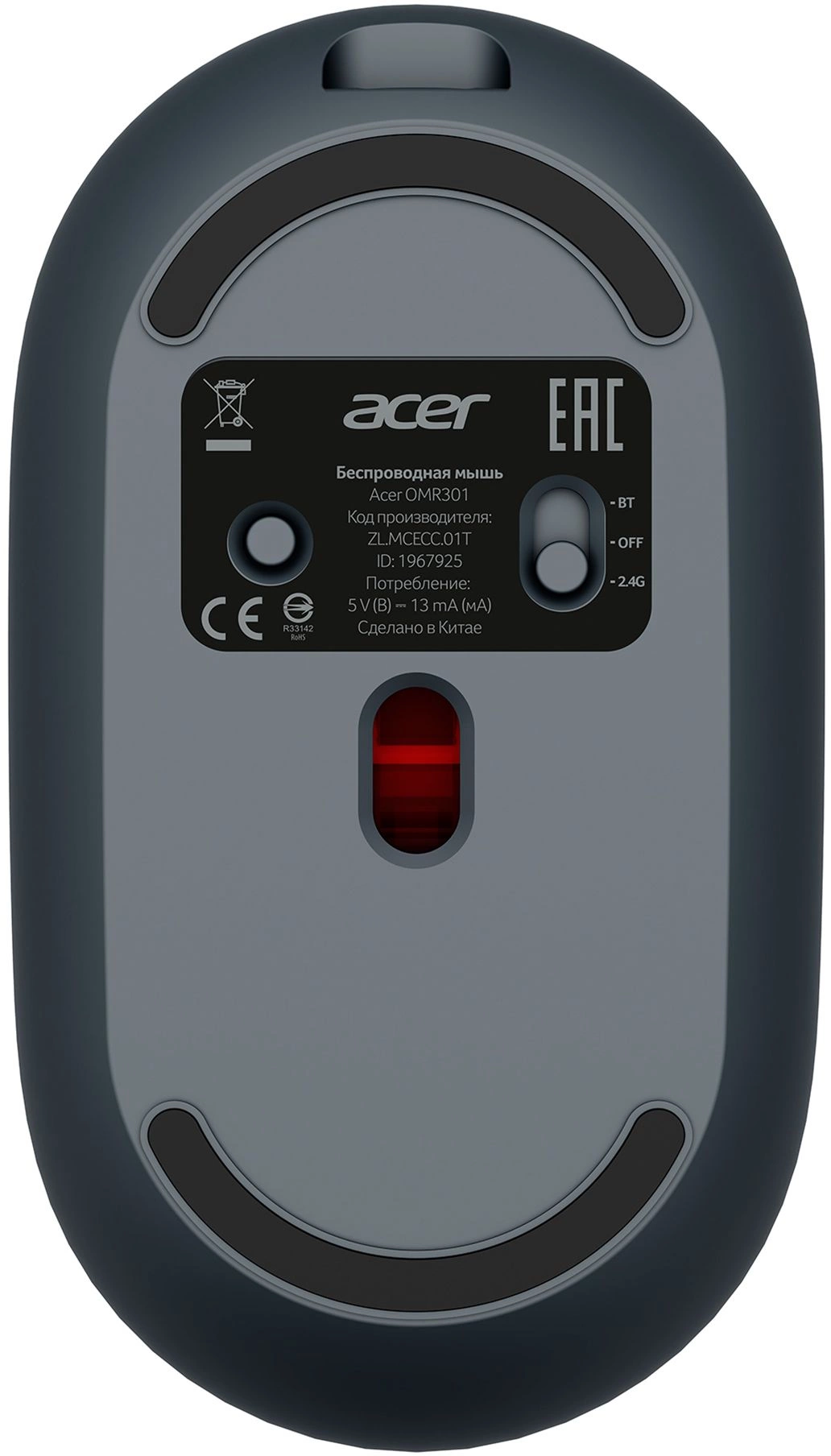Мышь Acer OMR301 черный оптическая 1600dpi беспров. BT/Radio USB 4but [ZL.MCECC.01T]