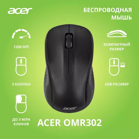 Мышь Acer OMR302 черный оптическая 1200dpi беспров. USB 3but [ZL.MCECC.01X]