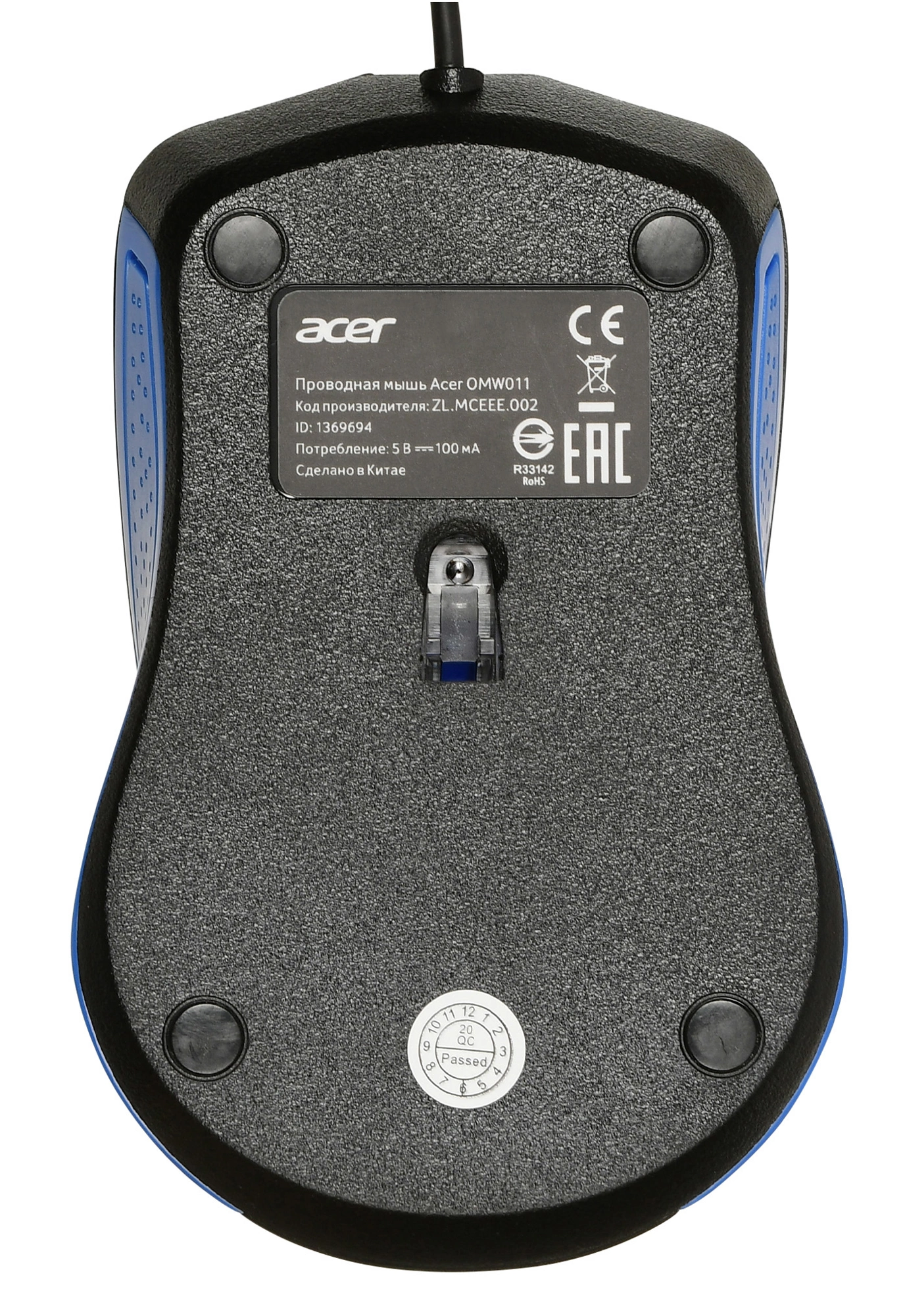 Мышь Acer OMW011 черный/синий оптическая 1200dpi USB 3but [ZL.MCEEE.002]