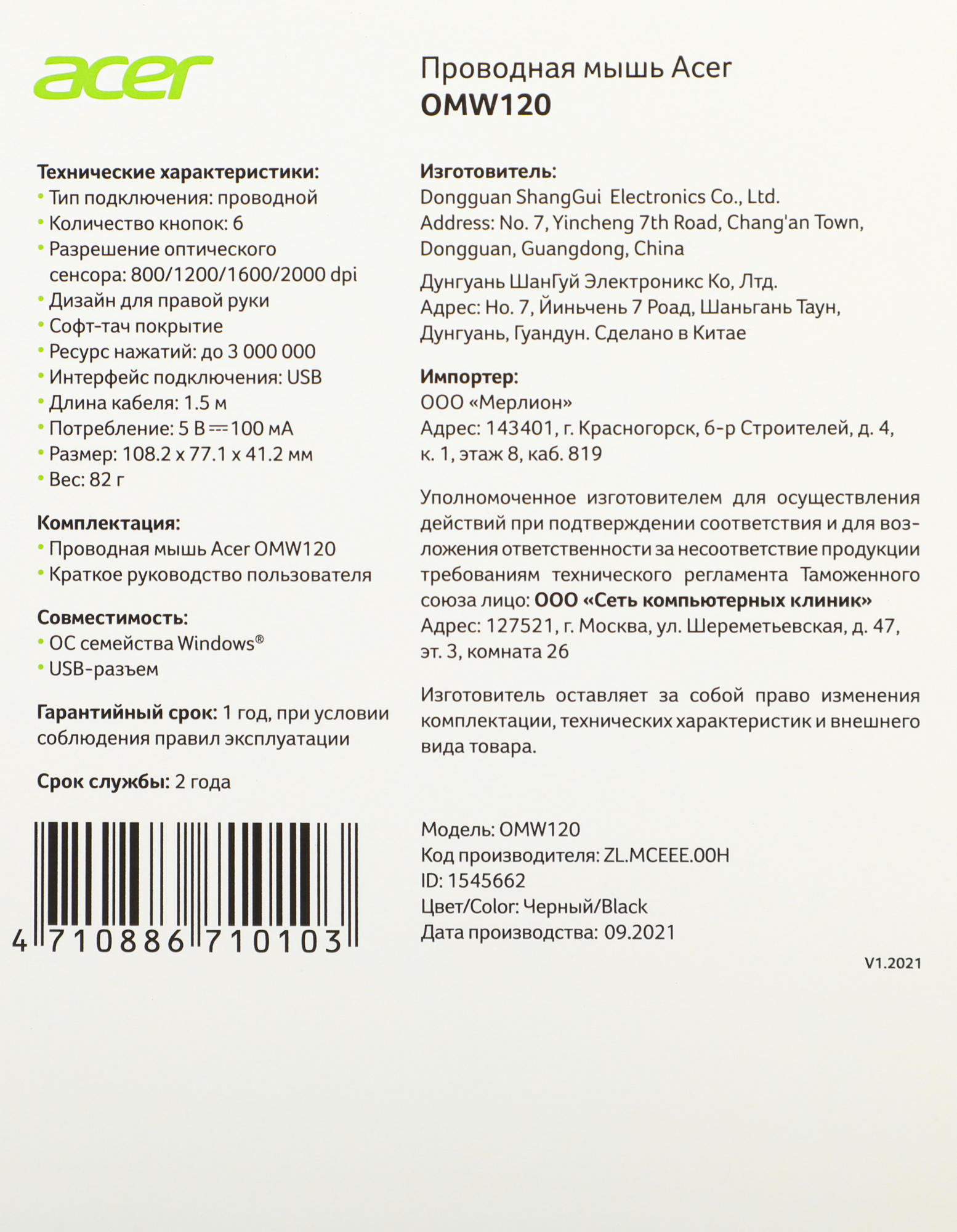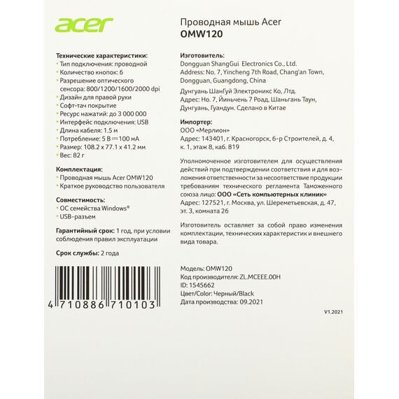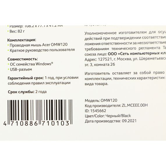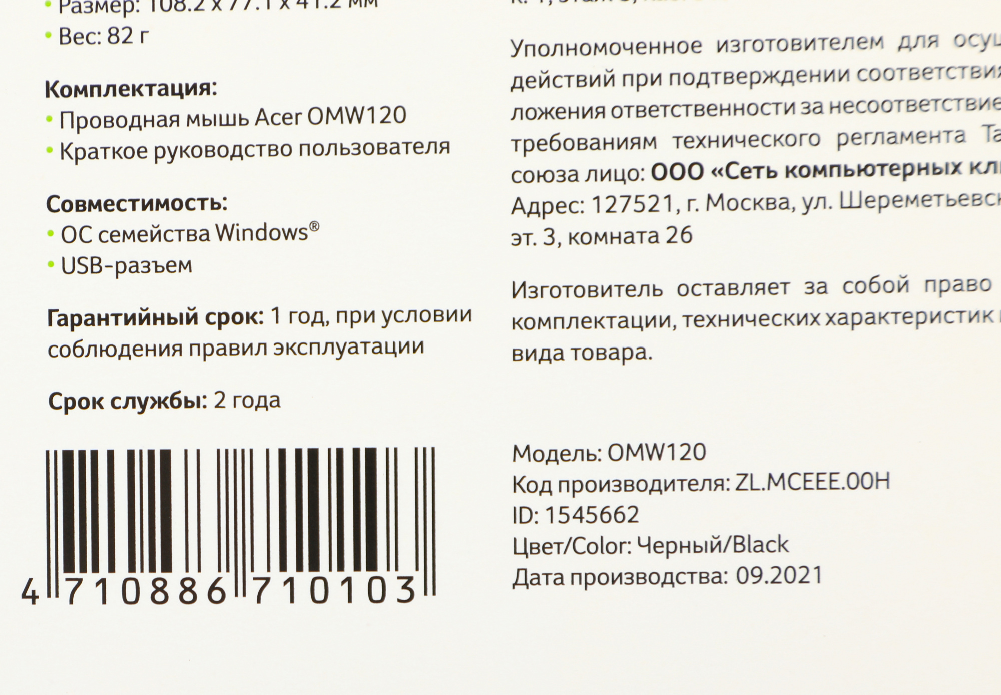 Наличие товара Acer OMW120 [ZL.MCEEE.00H]
