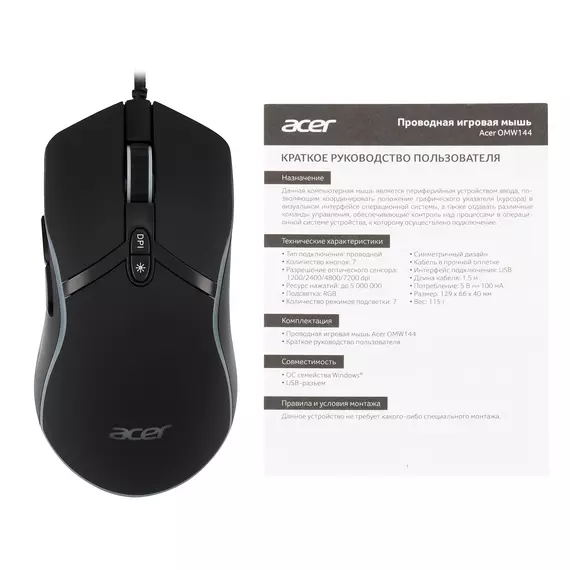 Мышь Acer OMW144 черный оптическая 7200dpi USB 7but [ZL.MCEEE.014]