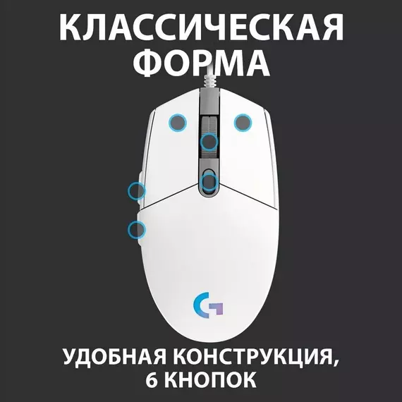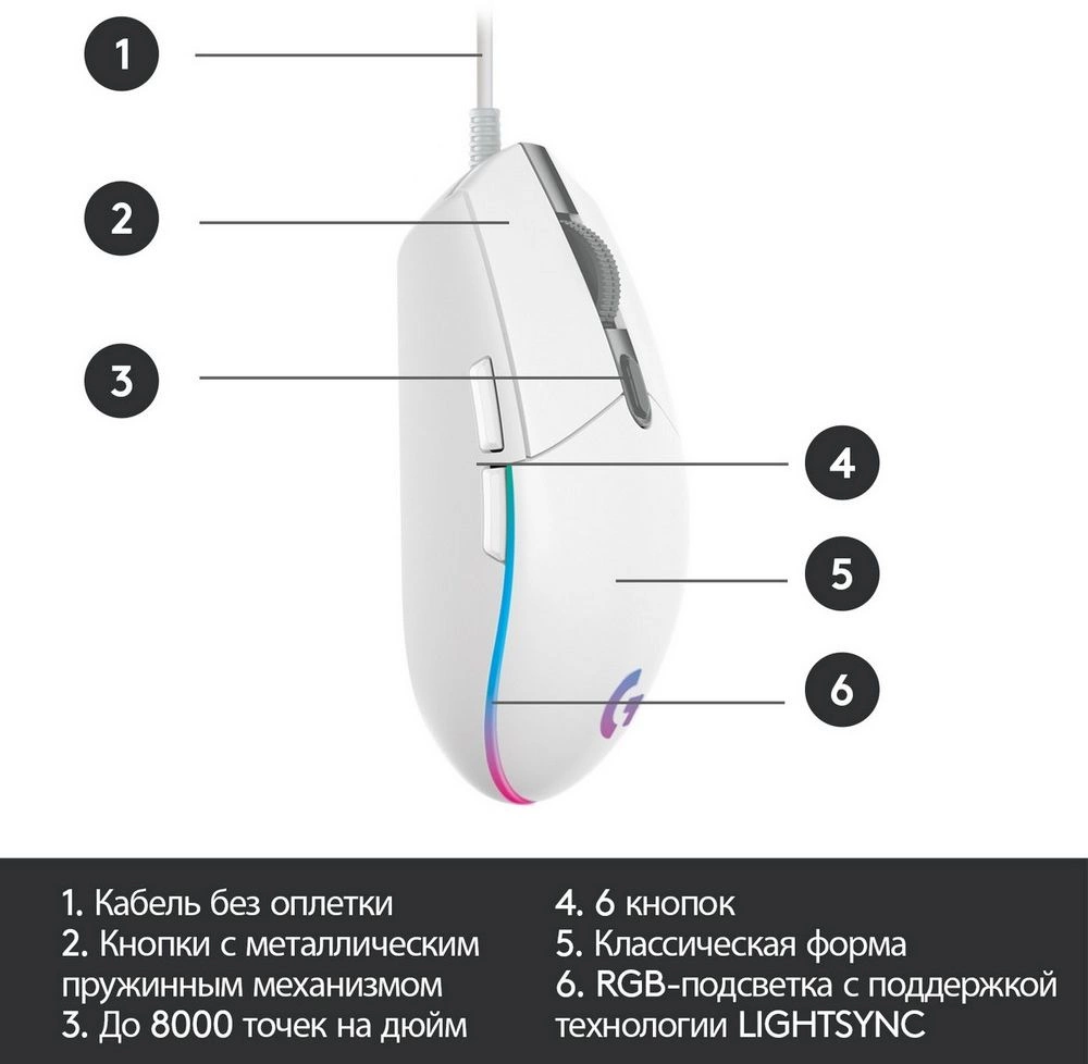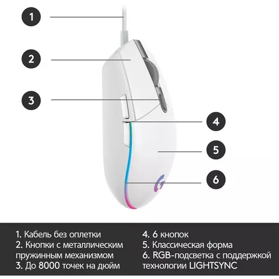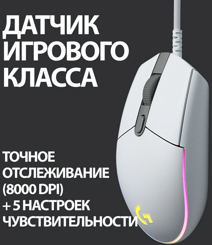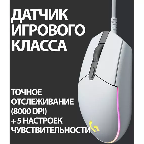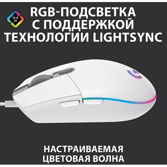 Мышь Logitech G102 LightSync белый оптическая 8000dpi USB 6but [910-005809]