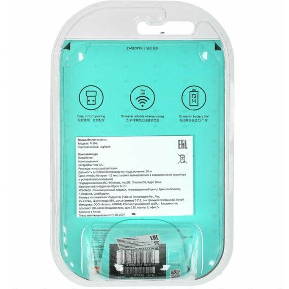 Мышь Logitech M186 черный/серый оптическая 1000dpi беспров. USB для ноутбука 2but [910-004131]