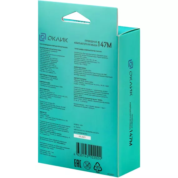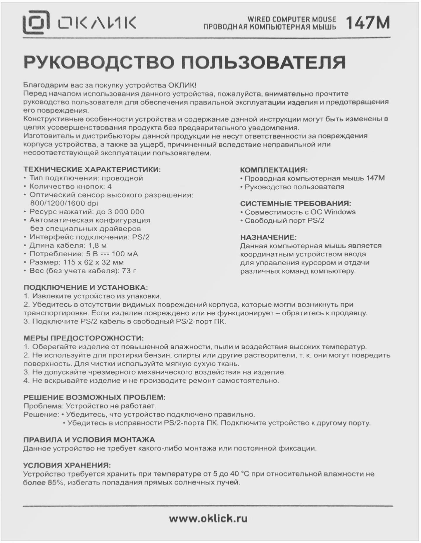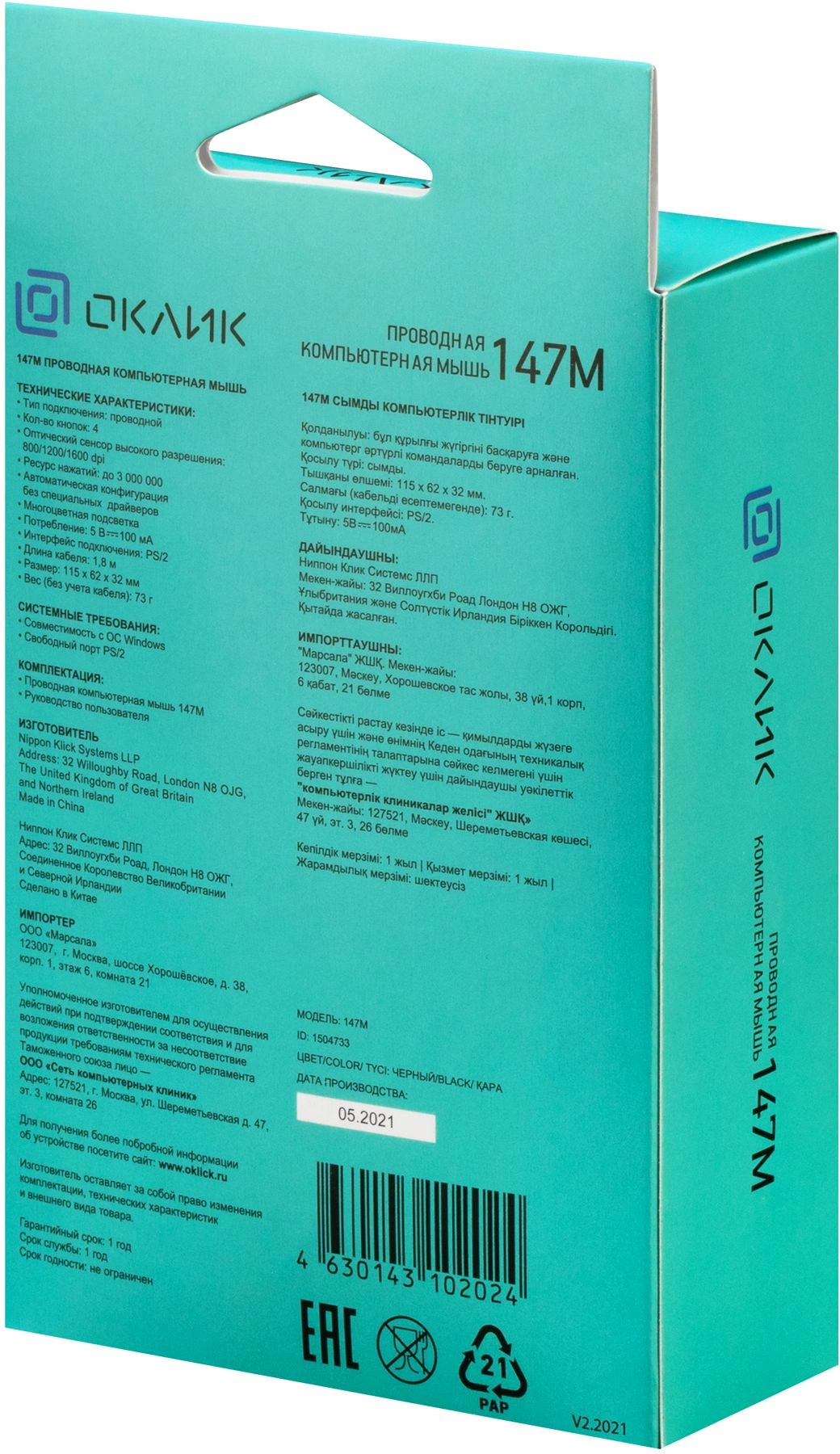 Мышь Oklick 147M черный оптическая 1600dpi PS/2 4but [1504733]