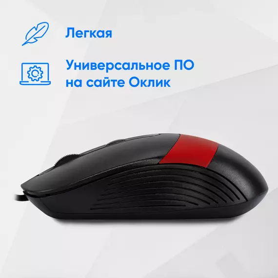 Мышь Oklick 310M черный/красный оптическая 2400dpi USB для ноутбука 4but [1869102]