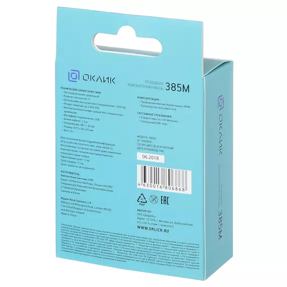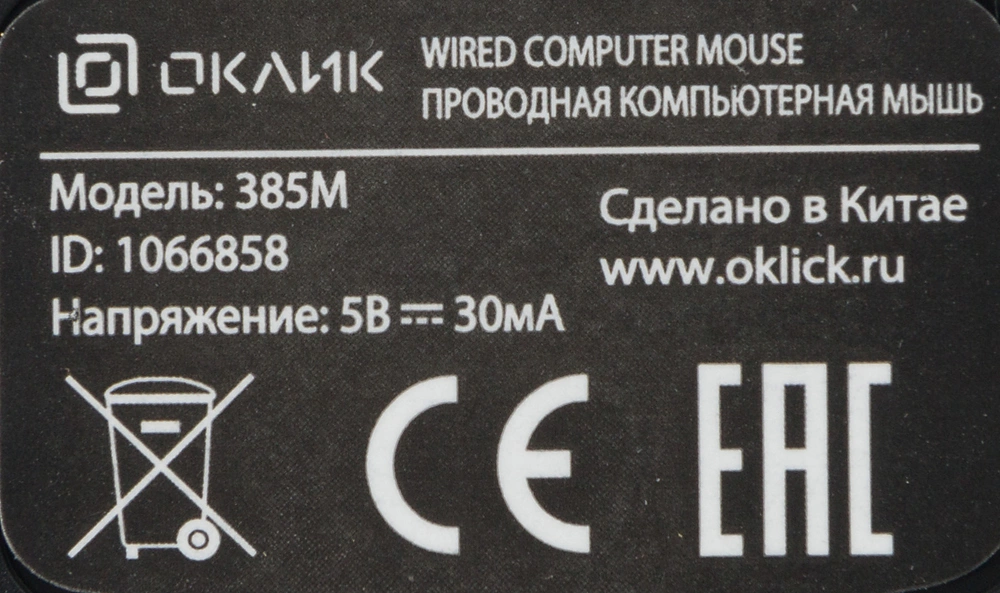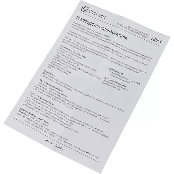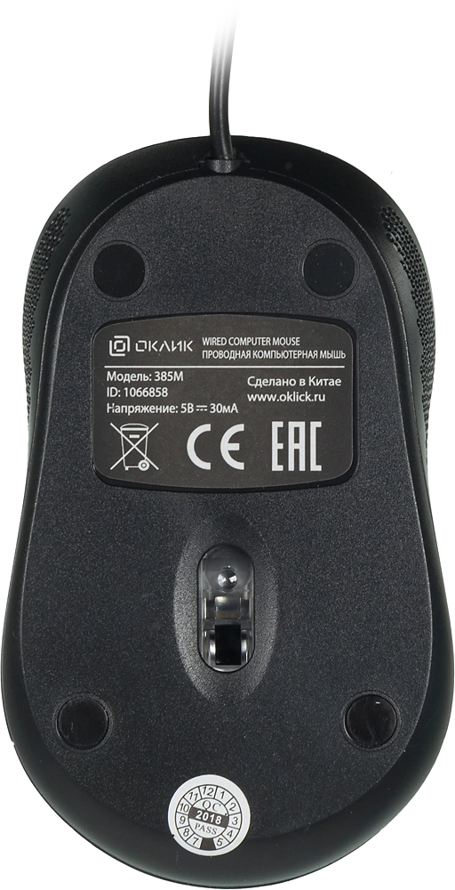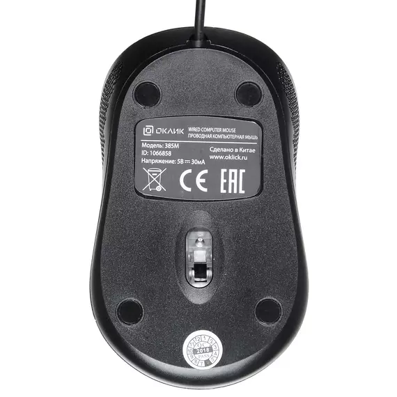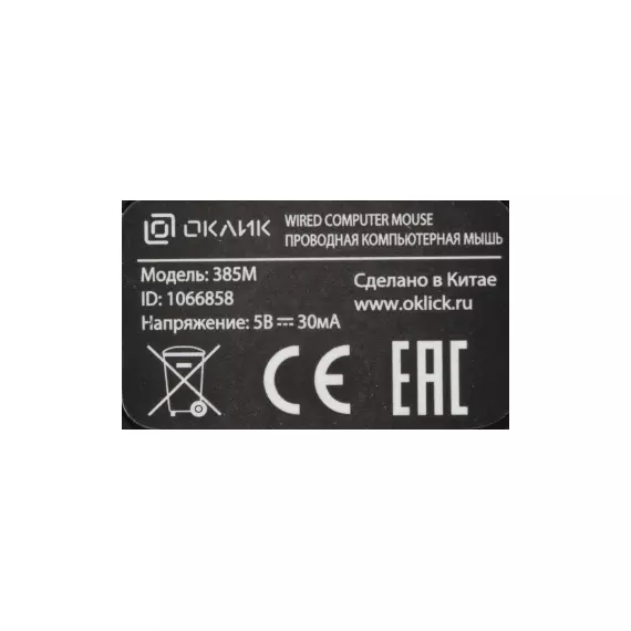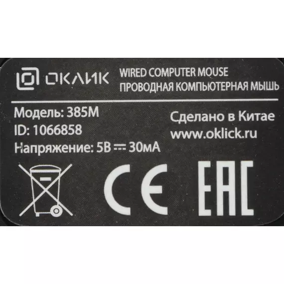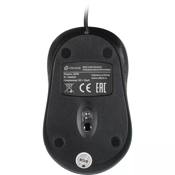 Мышь Oklick 385M черный оптическая 1600dpi USB для ноутбука 3but [1066858]