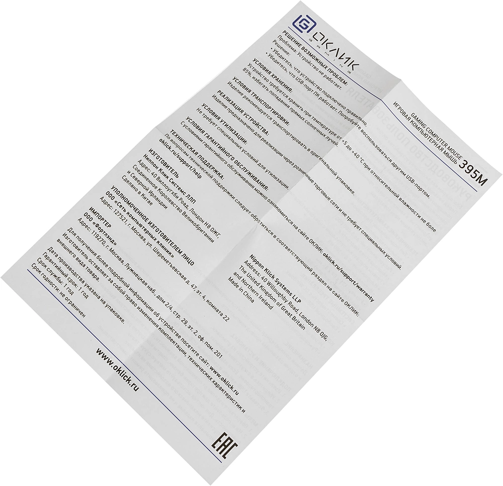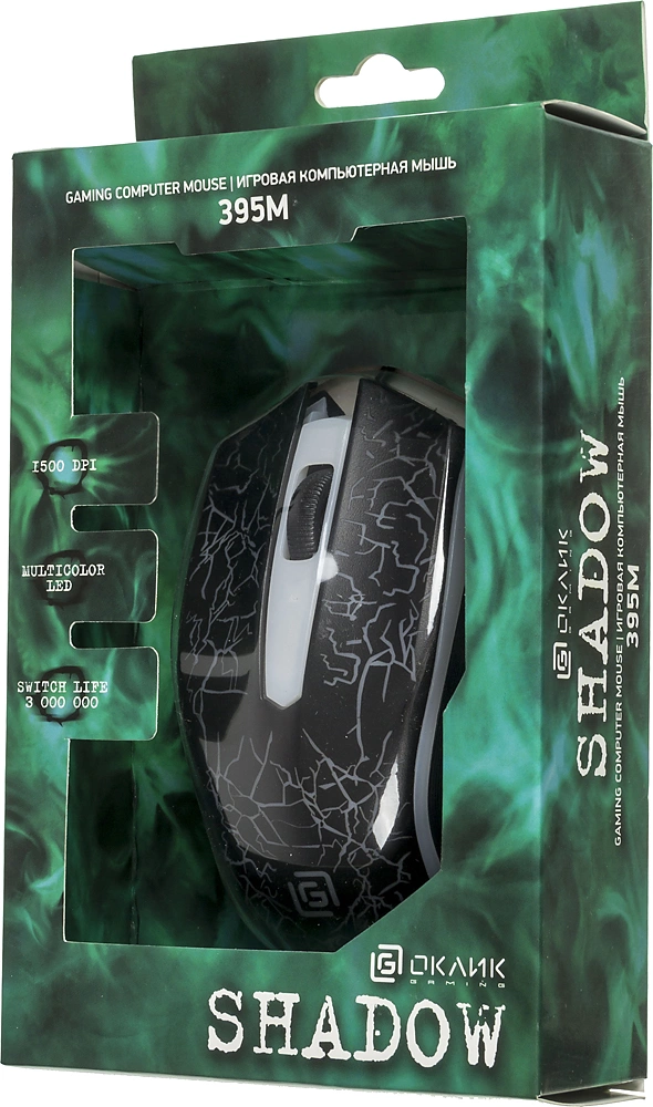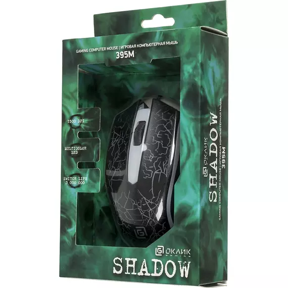 Мышь Oklick 395M SHADOW черный оптическая 1500dpi USB для ноутбука 3but [1102286]