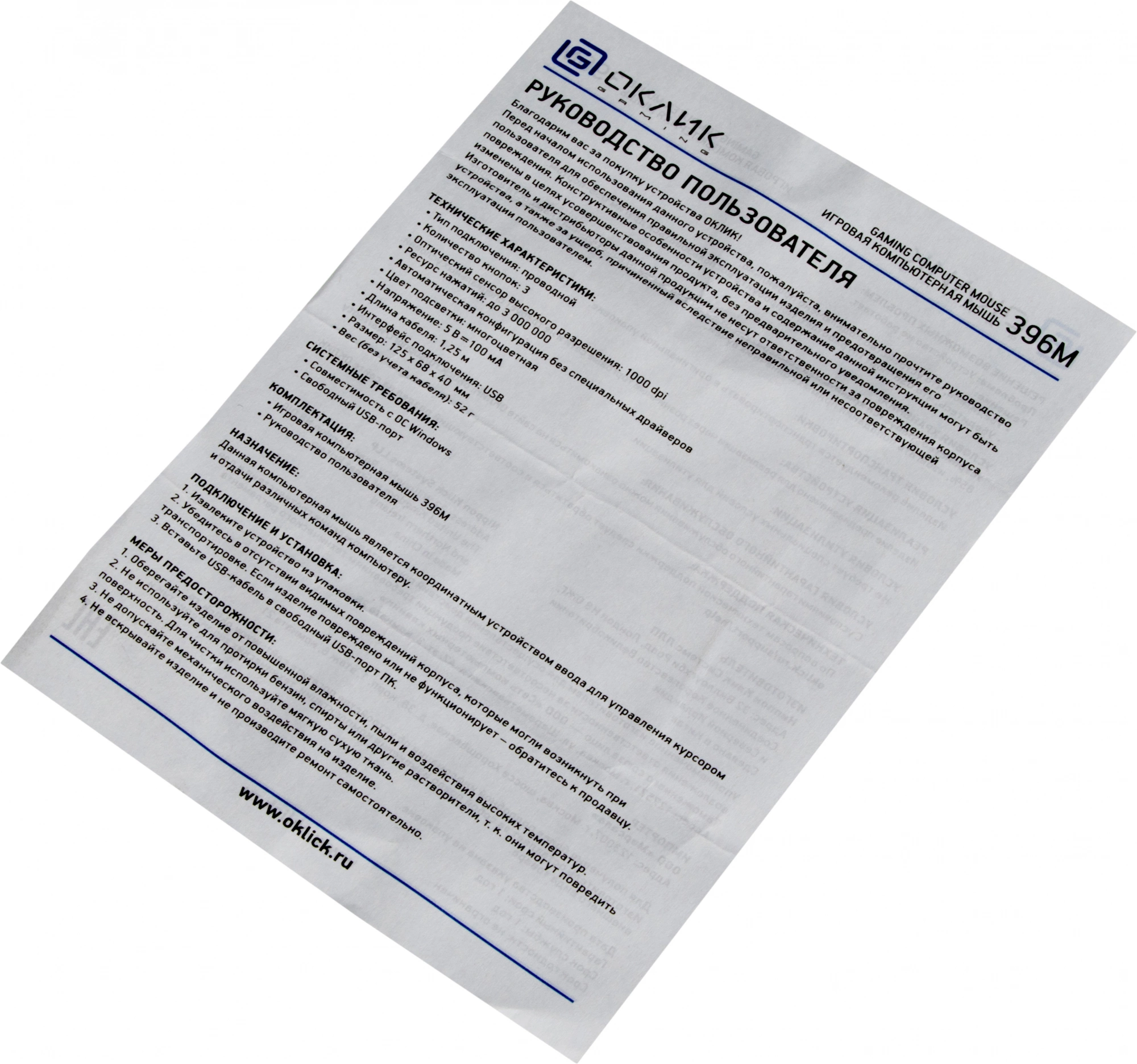 | Особенности | Проводнаясимметричная компьютерная мышь, автоматическая конфигурация без специальных драйверов, многоцветная динамическая подсветка, длинный провод 1,8 м. Специальное ПО расширяющее функциональные возможности мышки. |