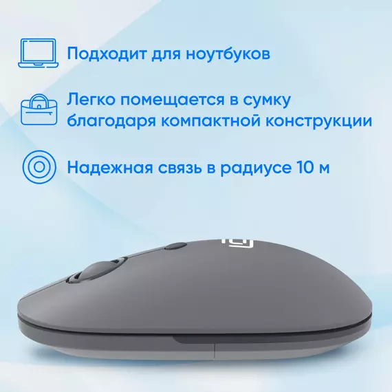 | Особенности | Slim дизайн, бесшумные клавиши, широкое резиновое колесо, кнопка вкл/выкл на нижней поверхности |