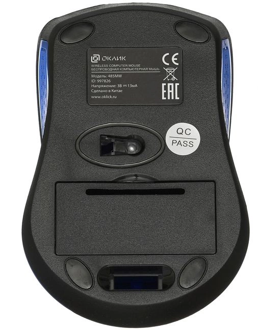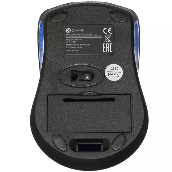 Мышь Oklick 485MW черный/синий оптическая 1000dpi беспров. USB для ноутбука 3but [997826]