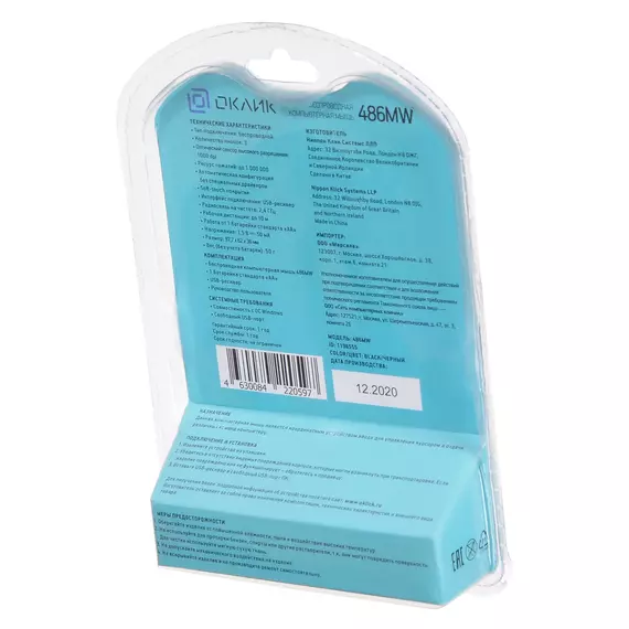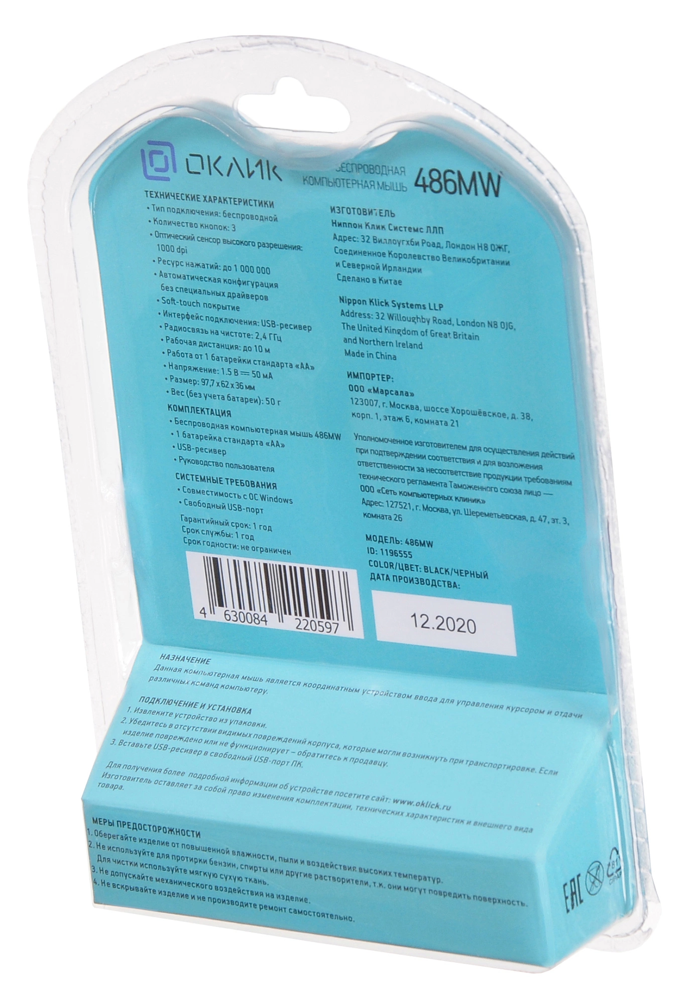 Мышь Oklick 486MW черный оптическая 1600dpi беспров. USB для ноутбука 3but [1196555]
