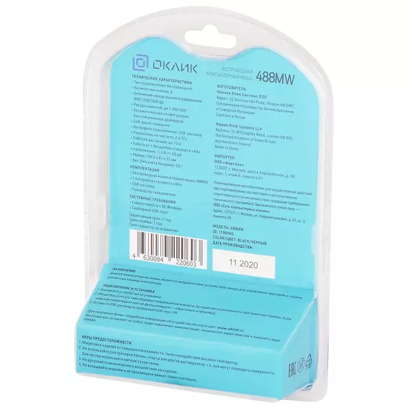 Мышь Oklick 488MW черный оптическая 1600dpi беспров. USB для ноутбука 4but [1196560]
