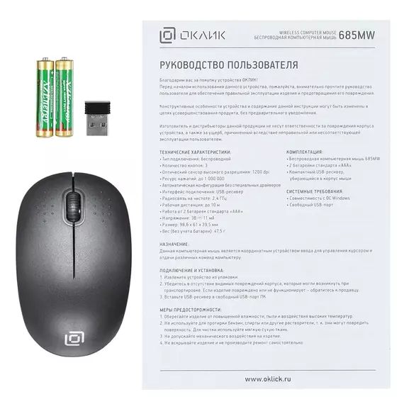 Мышь Oklick 685MW черный оптическая 1200dpi беспров. USB для ноутбука 3but [1058946]