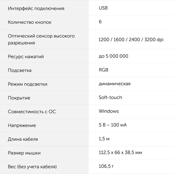 | Особенности | Автоматическая конфигурация без специальных драйверов. Прорезиненное колесо прокрутки. |