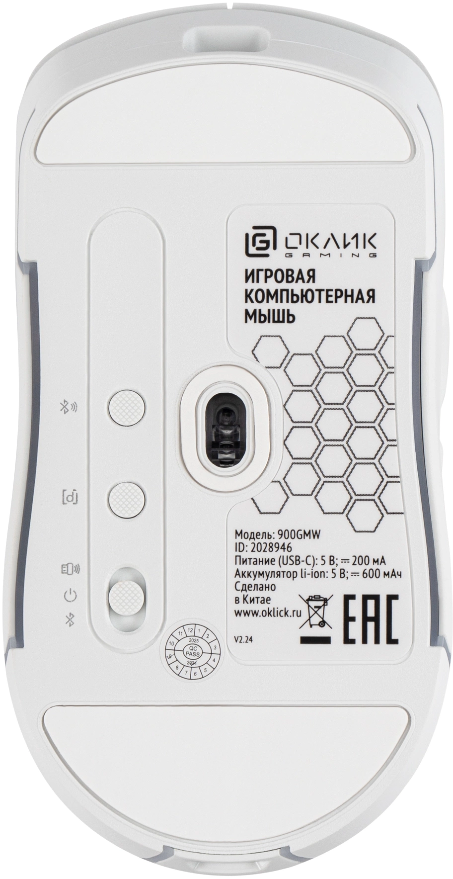 Мышь Oklick 900GMW белый оптическая 26000dpi беспров. BT/Radio USB 6but