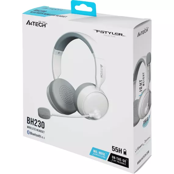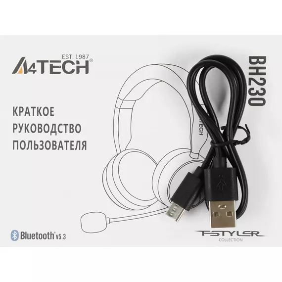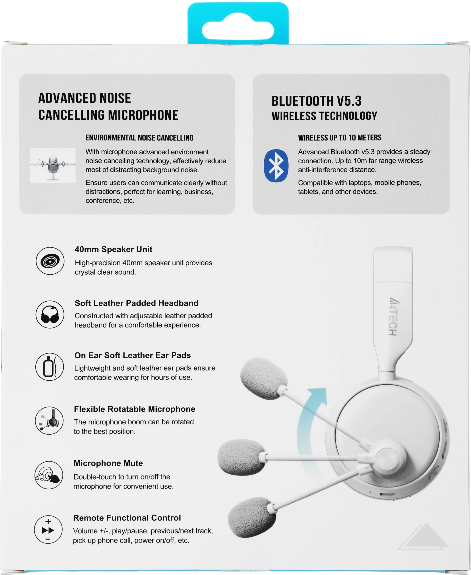 Наушники с микрофоном A4-Tech BH230 белый/серый мониторные BT оголовье