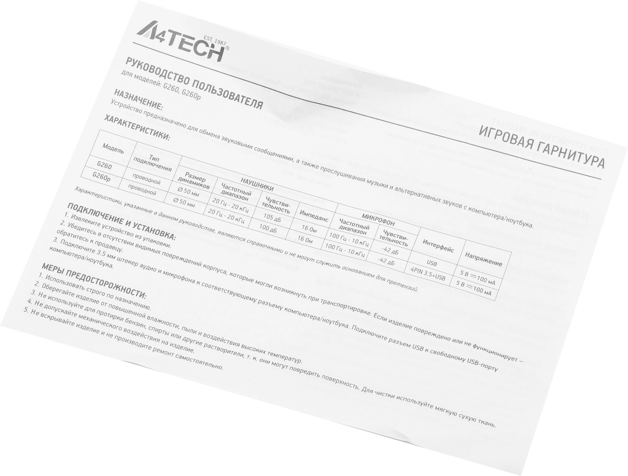 Наушники с микрофоном A4-Tech Bloody G260 черный 2м мониторные USB оголовье