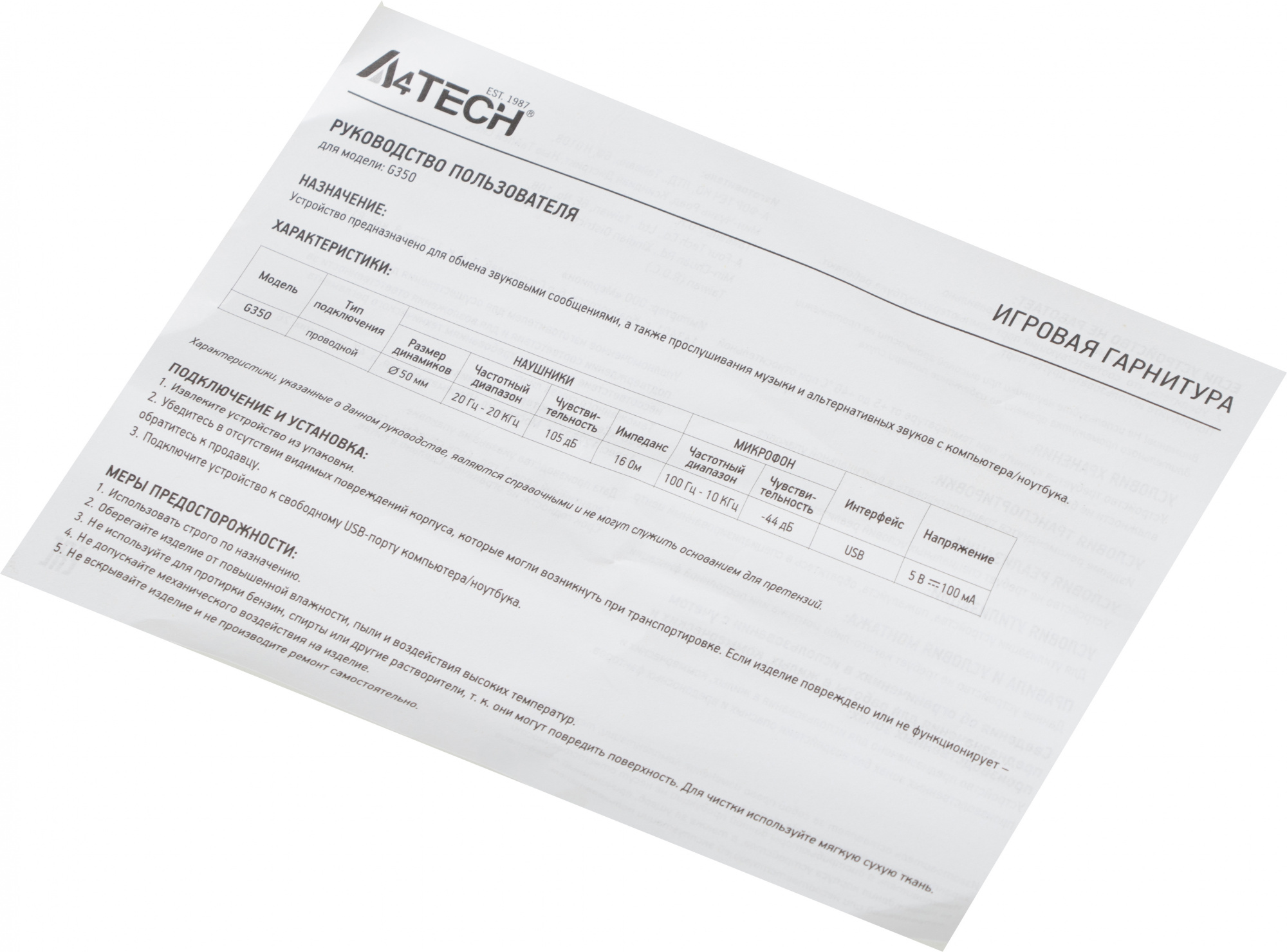 Описание A4-Tech Bloody G350