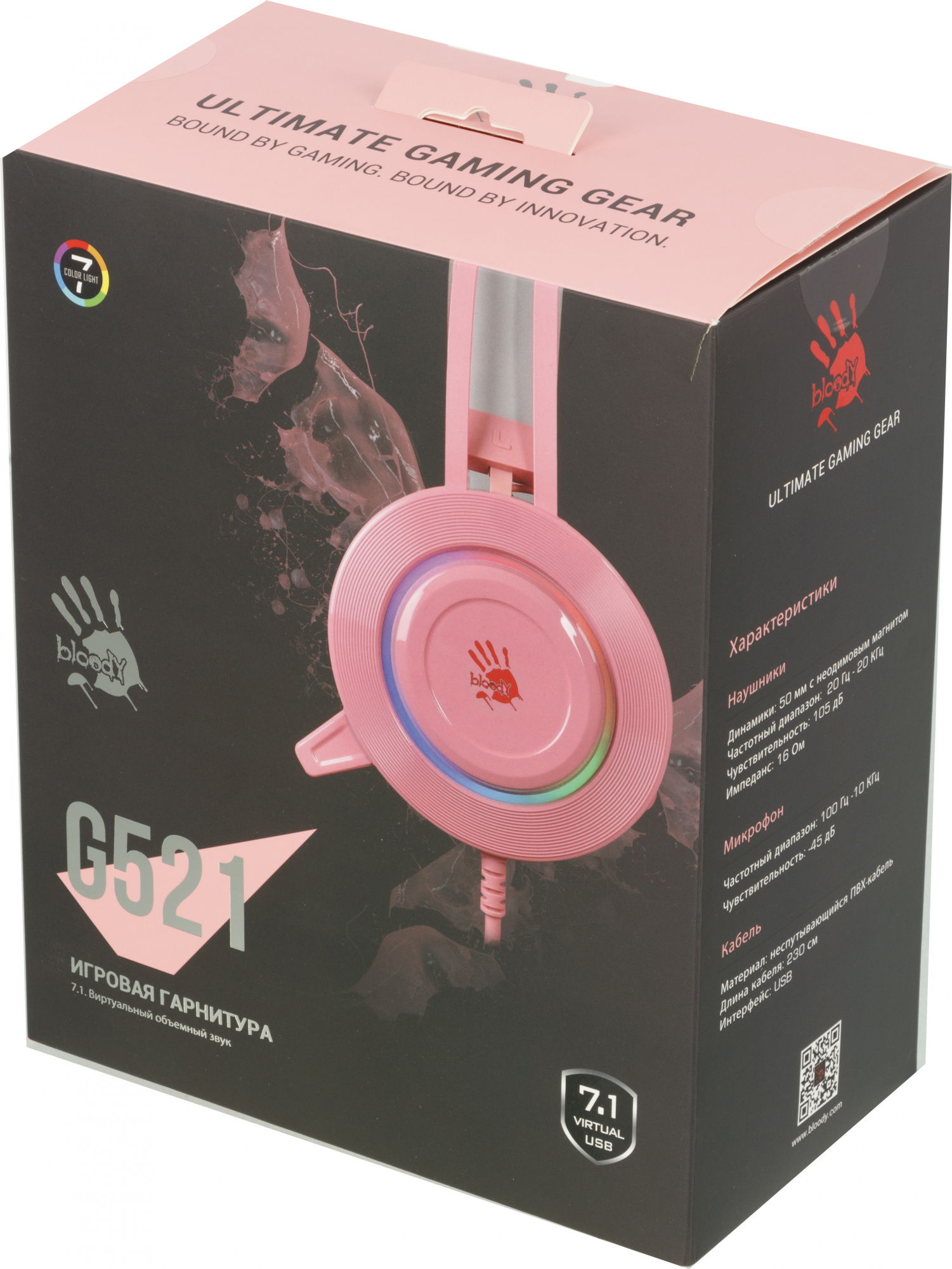 Наушники с микрофоном A4-Tech Bloody G521 PINK Розовый, 2.3 м, мониторные, USB, оголовье