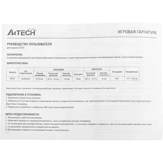 Описание A4-Tech Bloody G535 BLACK+SILVER