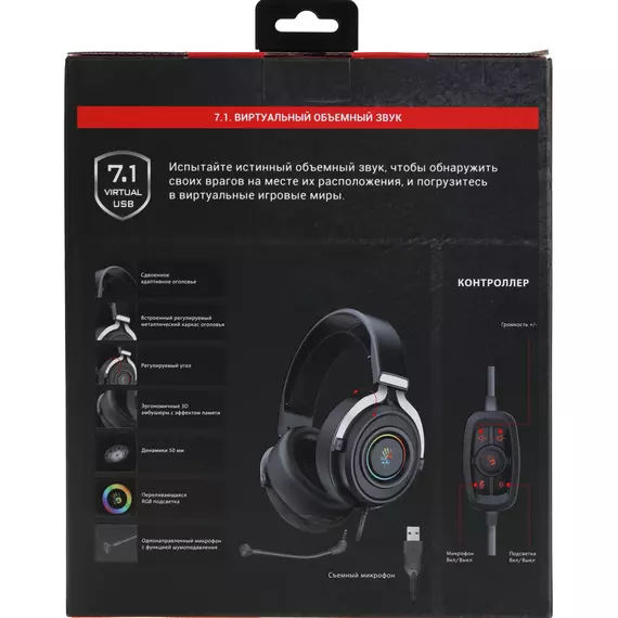 Наушники с микрофоном A4-Tech Bloody G535 BLACK+SILVER черный/серебристый 2м мониторные USB оголовье