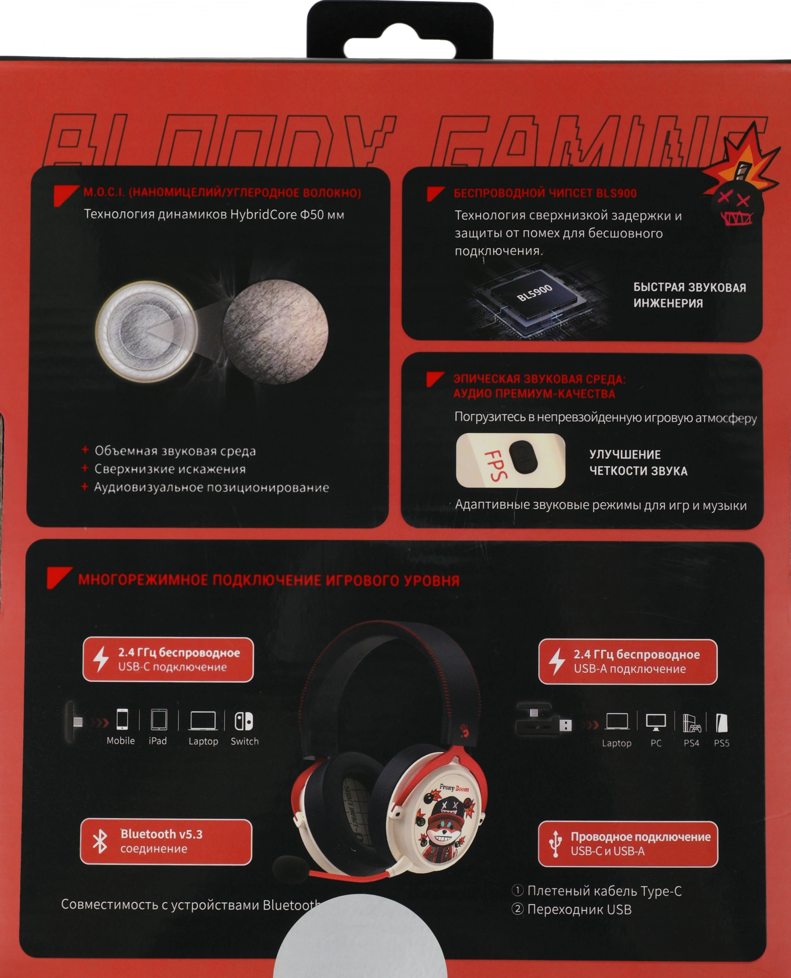 | Особенности | Доступны проводные и беспроводные соединения (беспроводное соединение 2,4G USB-C, беспроводное соединение 2,4G USB-A, соединение Bluetooth v5.3, проводное соединение USB-C и USB-A).Фирменный беспроводной чипсет BL5900Технология сверхнизкой задержки и защиты от помех для бесперебойного подключения. |