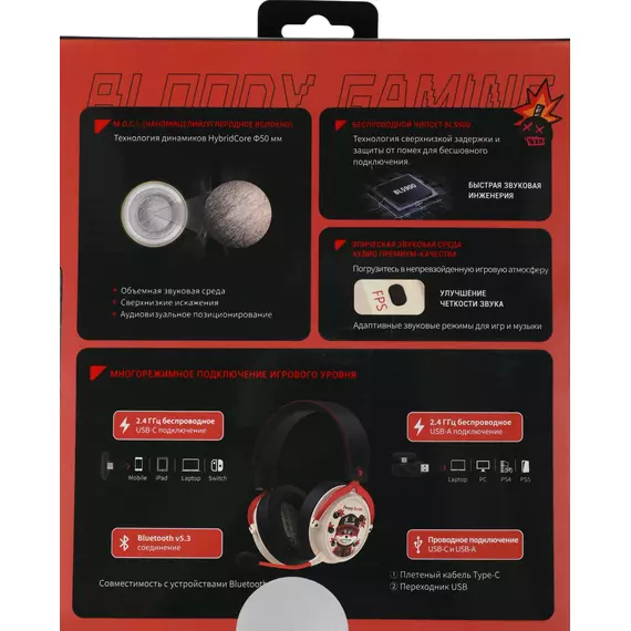 Наушники с микрофоном A4-Tech Bloody MR595 Proxy Boom бежевый/черный мониторные BT/Radio оголовье