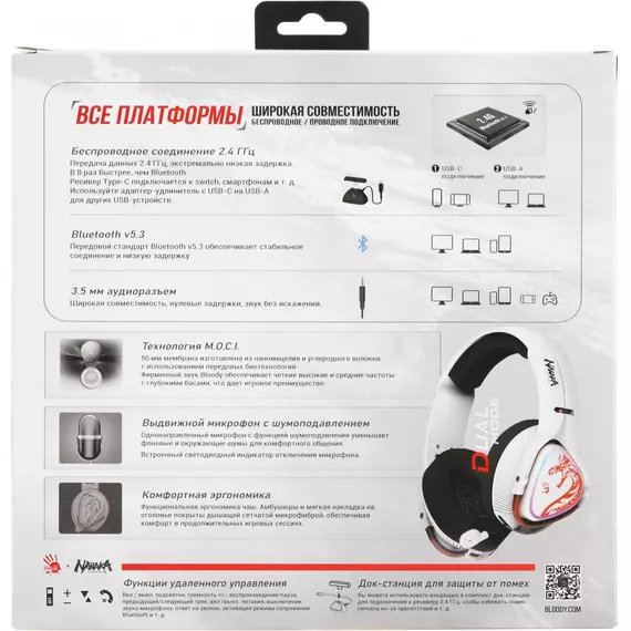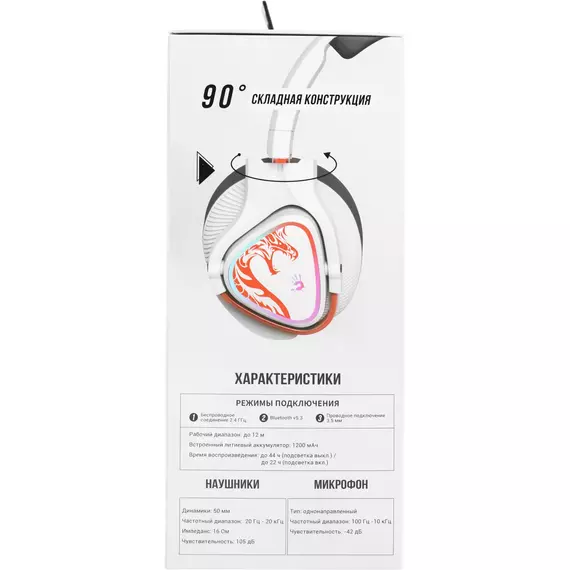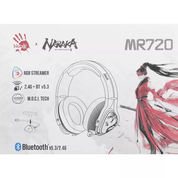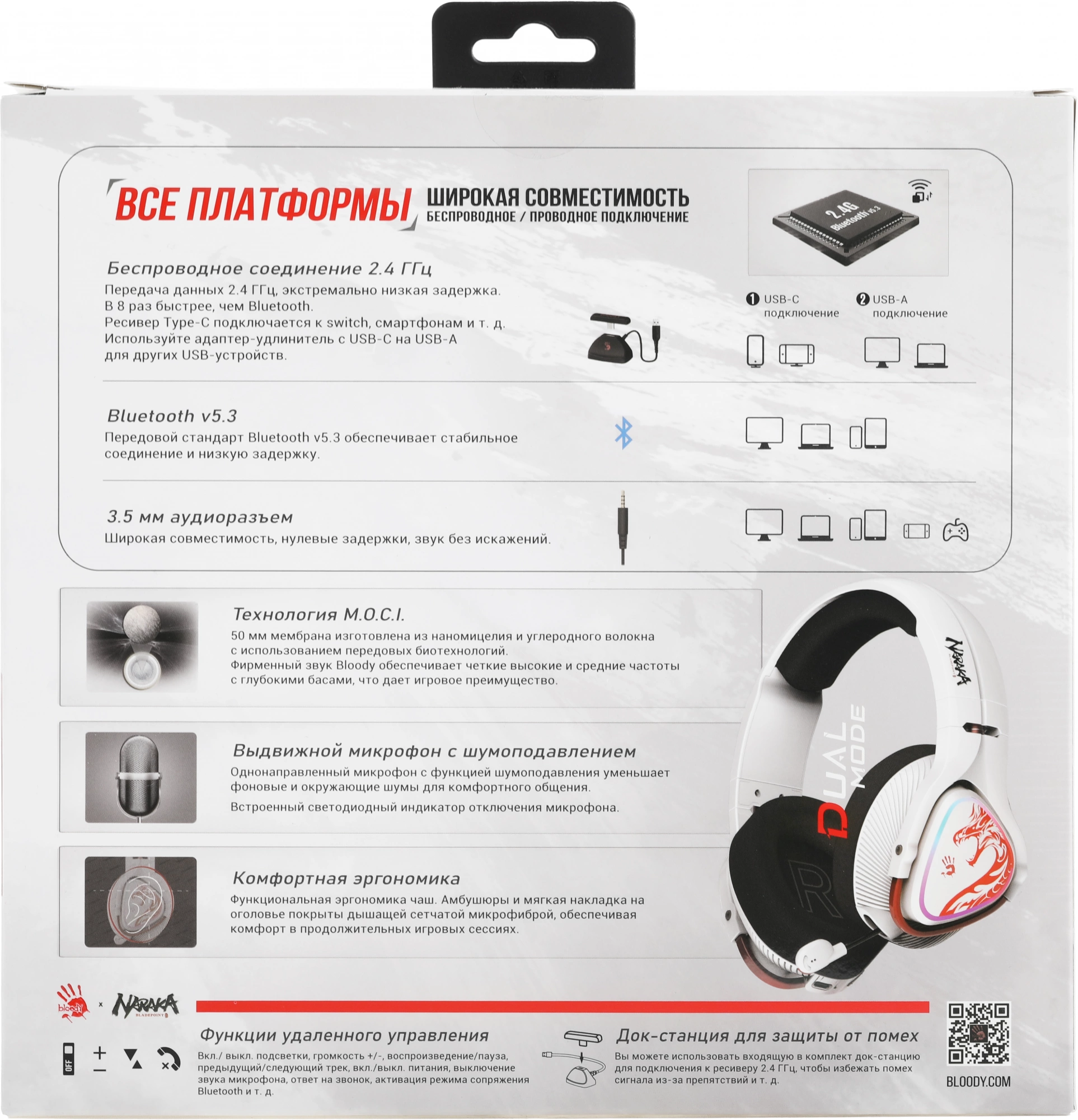 Наушники с микрофоном A4-Tech Bloody MR720 белый/красный мониторные BT/Radio оголовье [MR720 NARAKA]