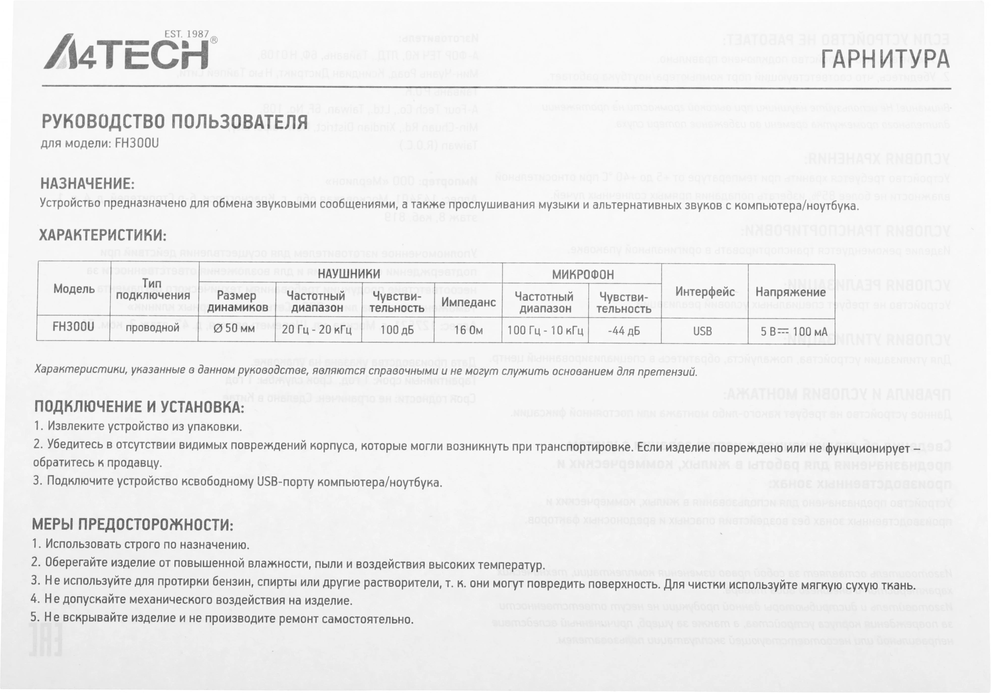 Описание A4-Tech FH300U BLACK