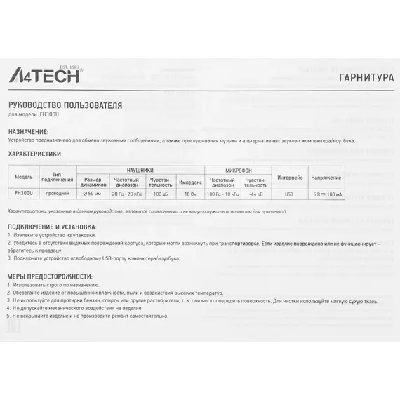 Наушники с микрофоном A4-Tech Fstyler FH300U WHITE белый 2м мониторные USB оголовье