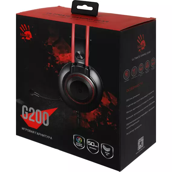 Наушники с микрофоном A4-Tech G200 черный/красный 2м мониторные оголовье [AUX3.5-4PIN +USB]