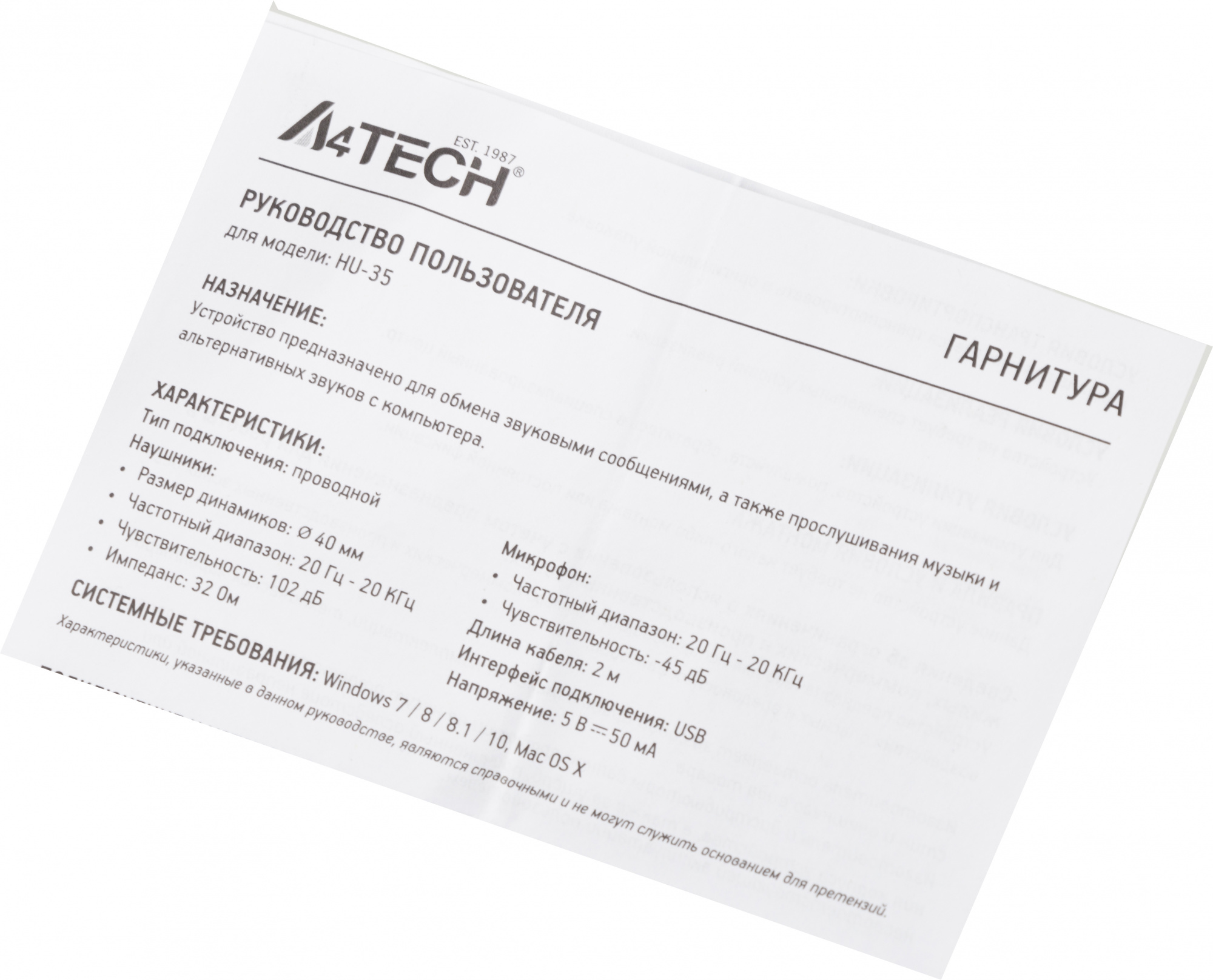 Описание A4-Tech HU-35