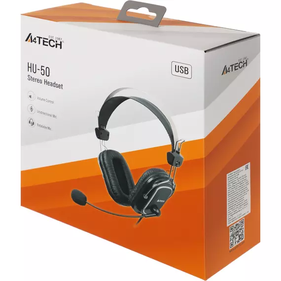 Наушники с микрофоном A4-Tech HU-50 черный 2м накладные USB оголовье
