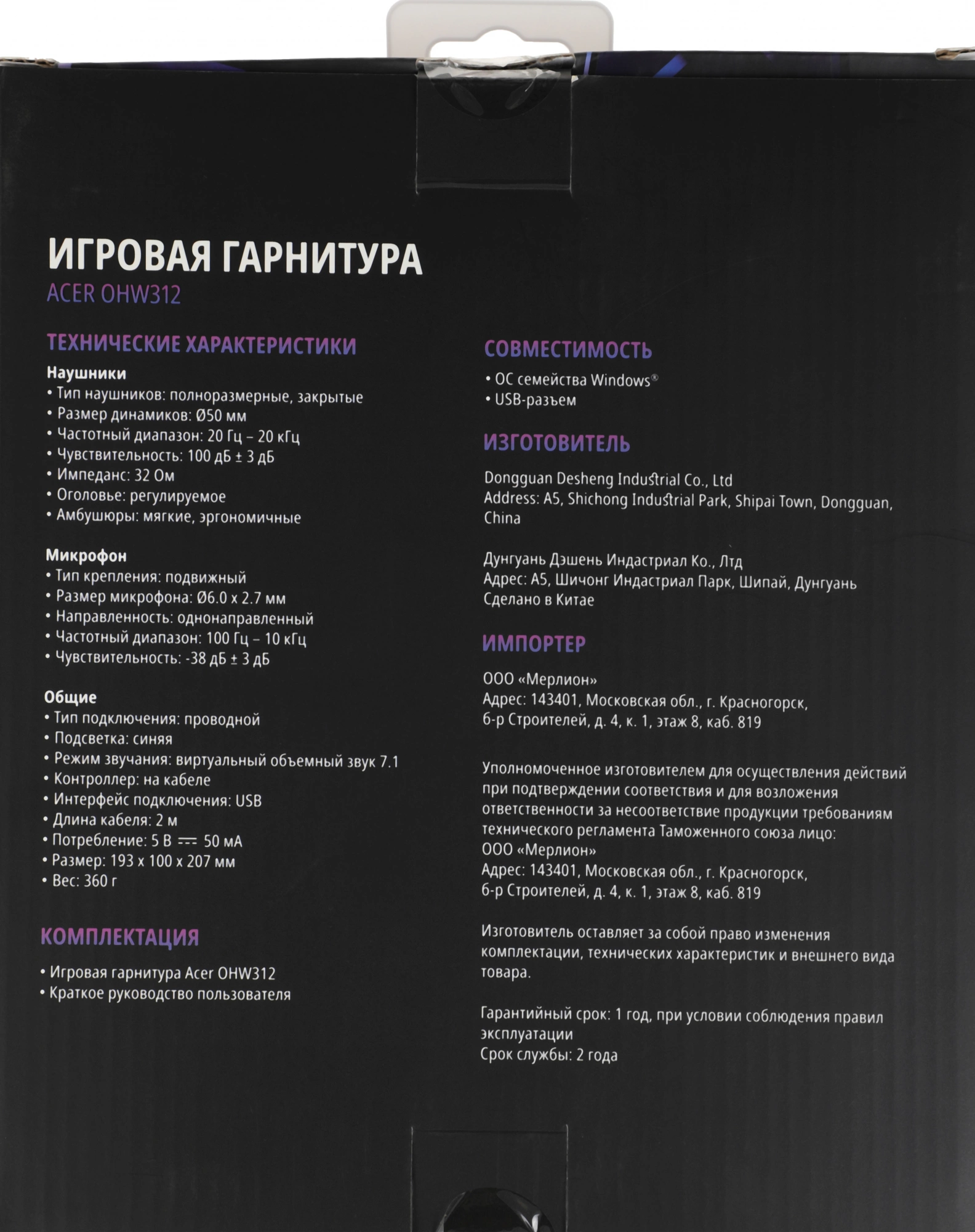 Описание Acer OHW312 [ZL.HDSEE.007]