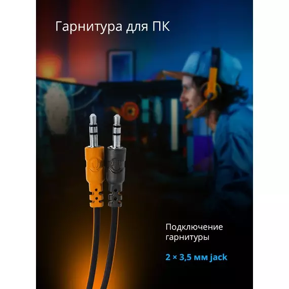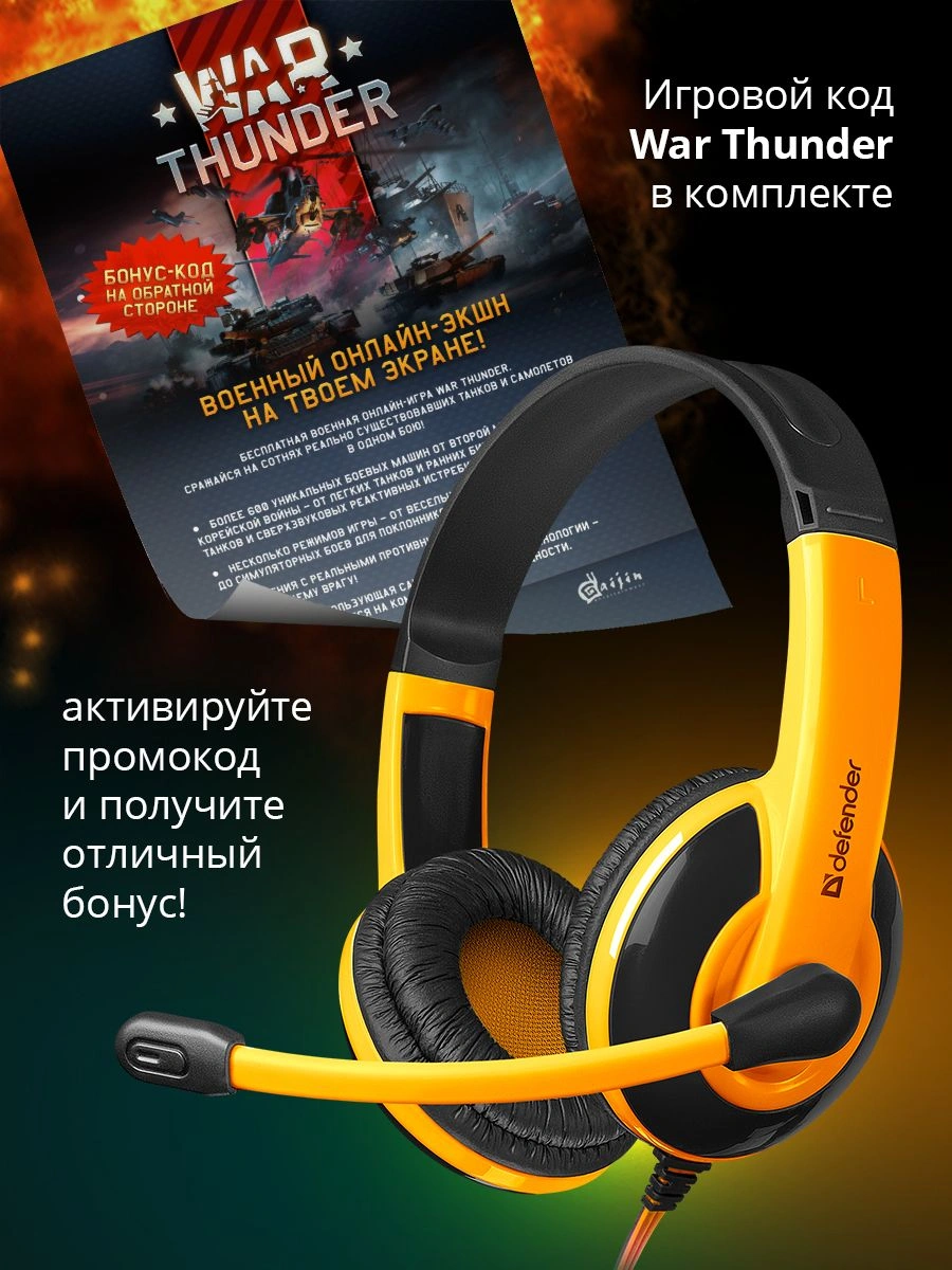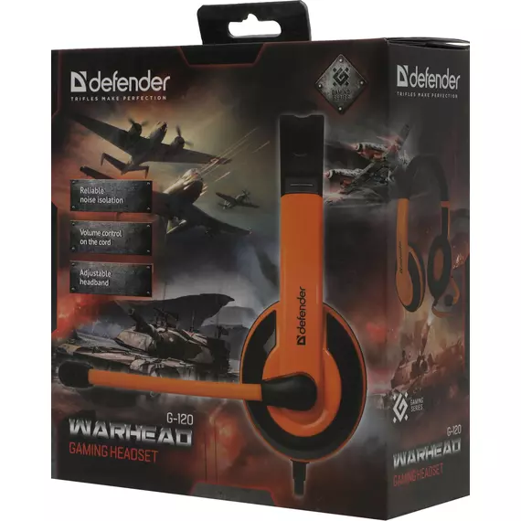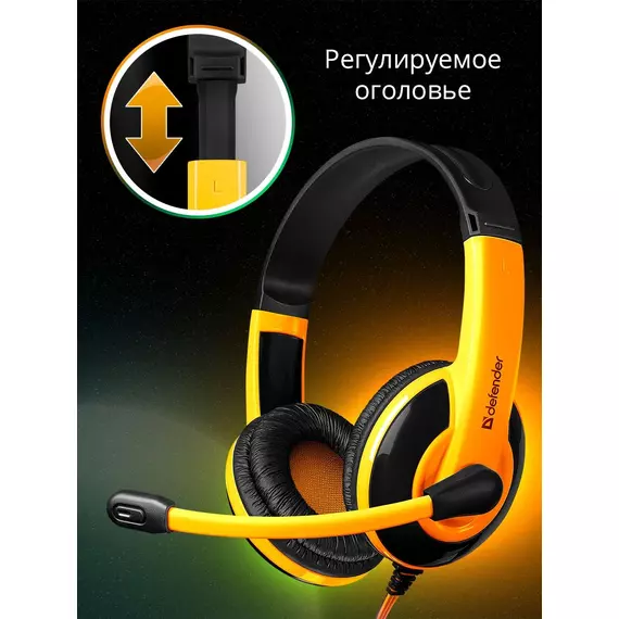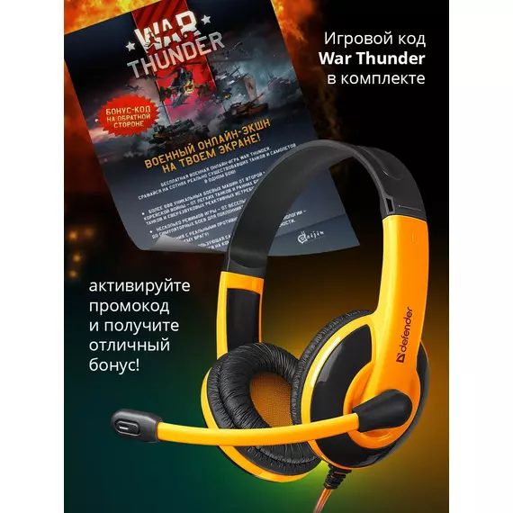 Наушники с микрофоном Defender Warhead G-120 оранжевый/черный 2м накладные оголовье [64099]