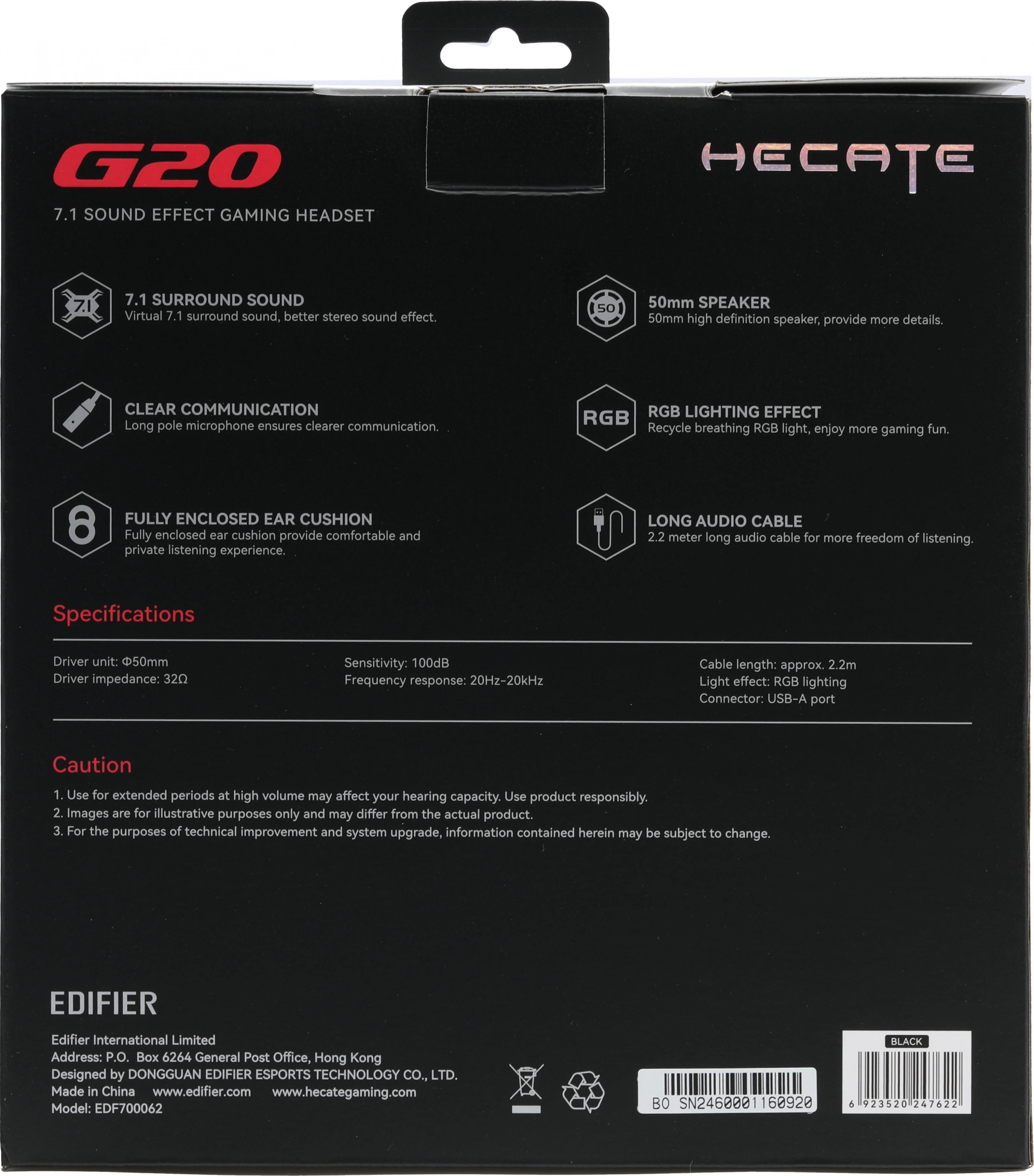Наушники с микрофоном Edifier G20 черный 2.2м мониторные USB оголовье